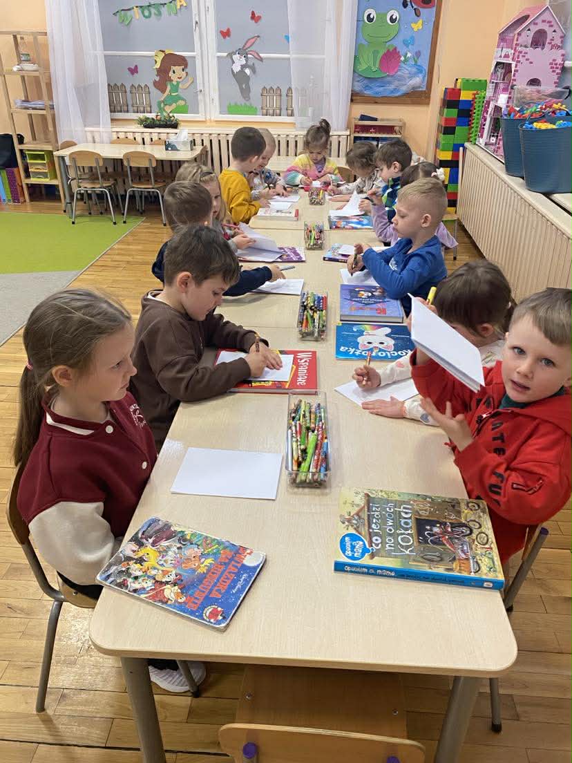 Dzisiejszy dzień upłynął w bajkowej atmosferze. Dzieci poznały, jak powstaje książka oraz przypomniały sobie, jak należy o nią dbać i z niej korzystać. Wyjątkowym momentem było zaprezentowanie swoich ulubionych książek. Przedszkolaki z radością opowiadały o bohaterach i historiach, które najbardziej lubią. Nie zabrakło także kreatywnej zabawy - dzieci tworzyły własne książeczki, wcielając się w rolę autorów i ilustratorów. To był dzień pełen radości i inspiracji do sięgania po książki.