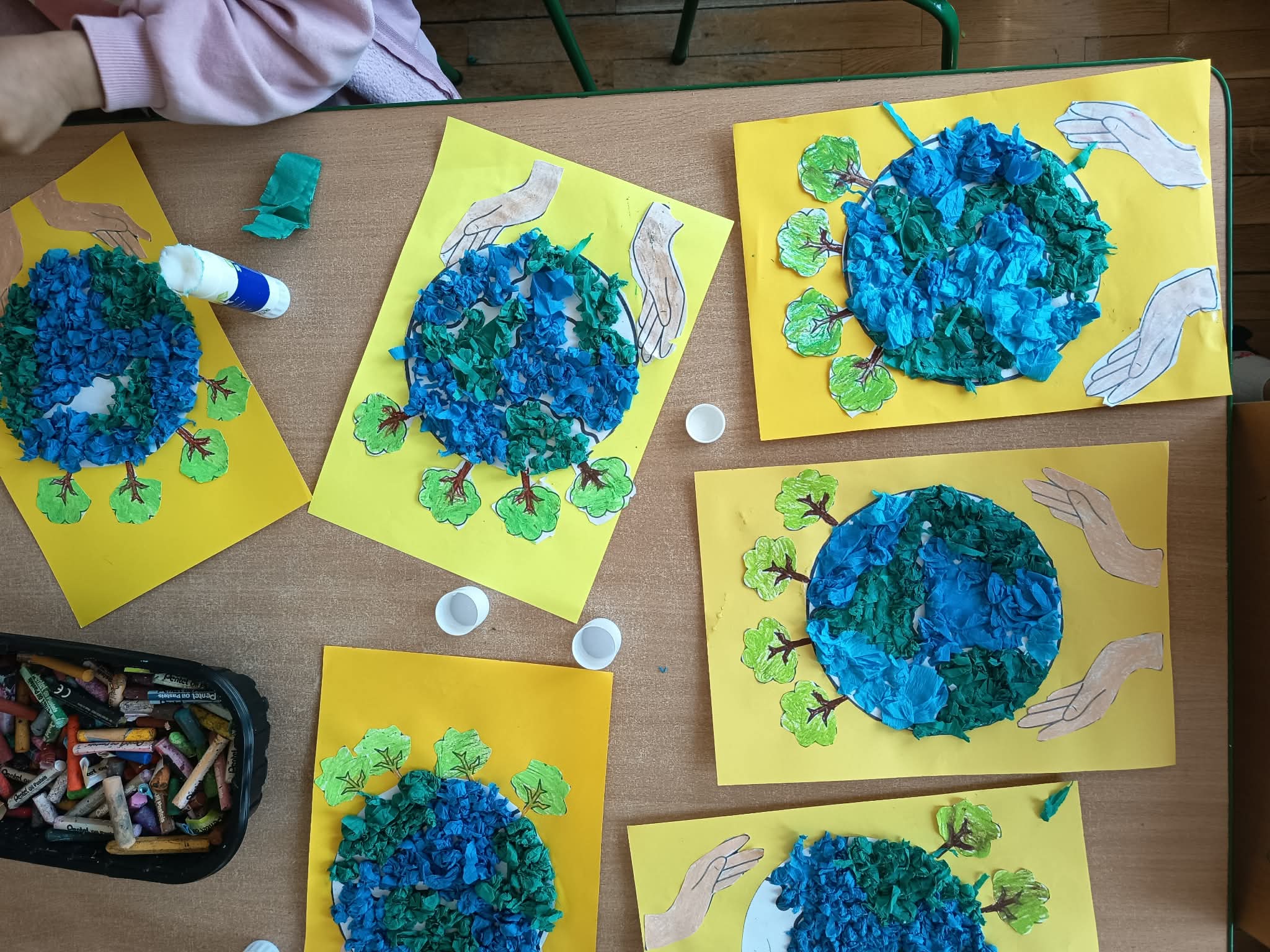 Z okazji Dnia Ziemi w naszym przedszkolu odbył się wyjątkowy tydzień pełen ekologicznych działań, radości i nauki przez zabawę. Dzieci z dużym zaangażowaniem uczestniczyły w zajęciach, podczas których poznawały zasady dbania o środowisko – uczyły się segregacji odpadów, rozmawiały o oszczędzaniu wody oraz odkrywały, jak ważna jest troska o rośliny i zwierzęta. Nie zabrakło także kreatywnych prac plastycznych, wspólnego sadzenia roślin oraz spacerów, podczas których mali odkrywcy obserwowali piękno otaczającej przyrody. Ten wyjątkowy czas pokazał, że nawet najmłodsi mogą mieć realny wpływ na ochronę naszej planety, a nauka poprzez doświadczenie i zabawę przynosi najlepsze efekty.