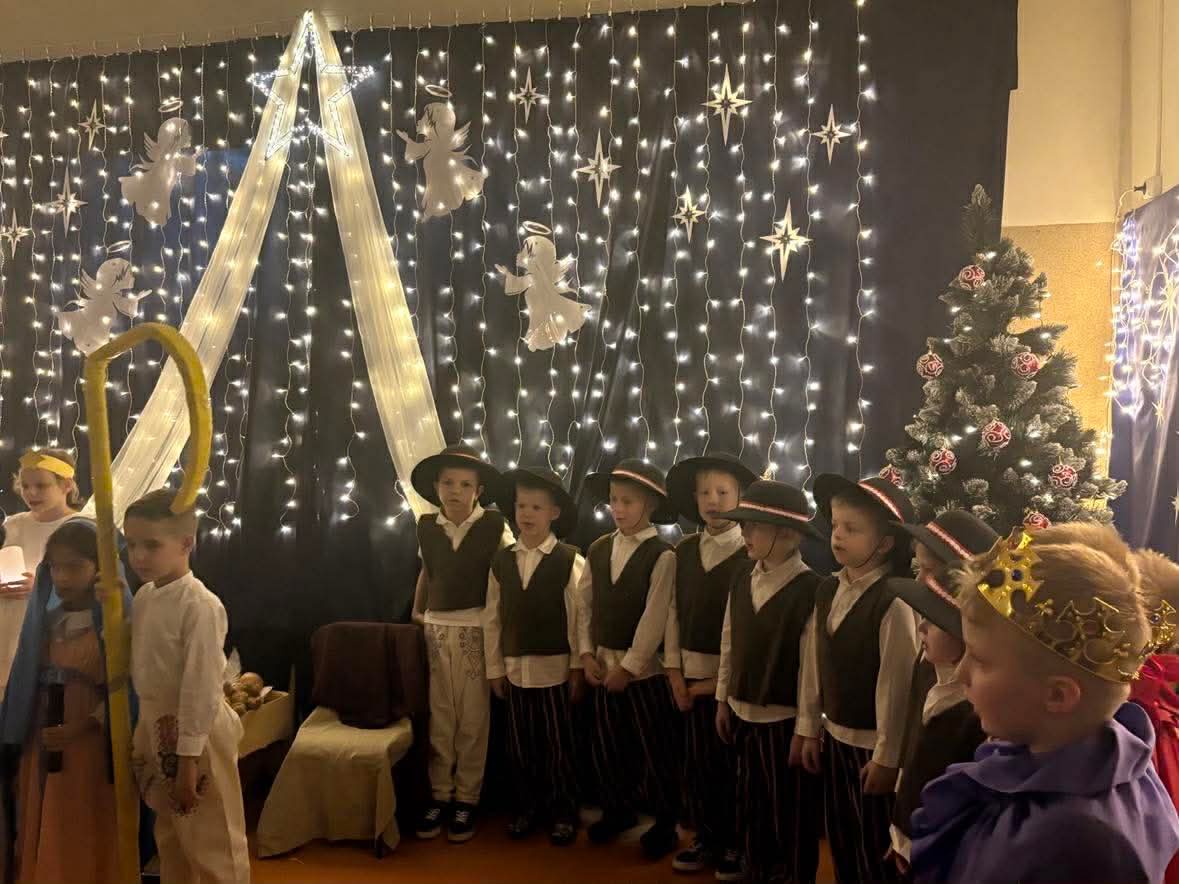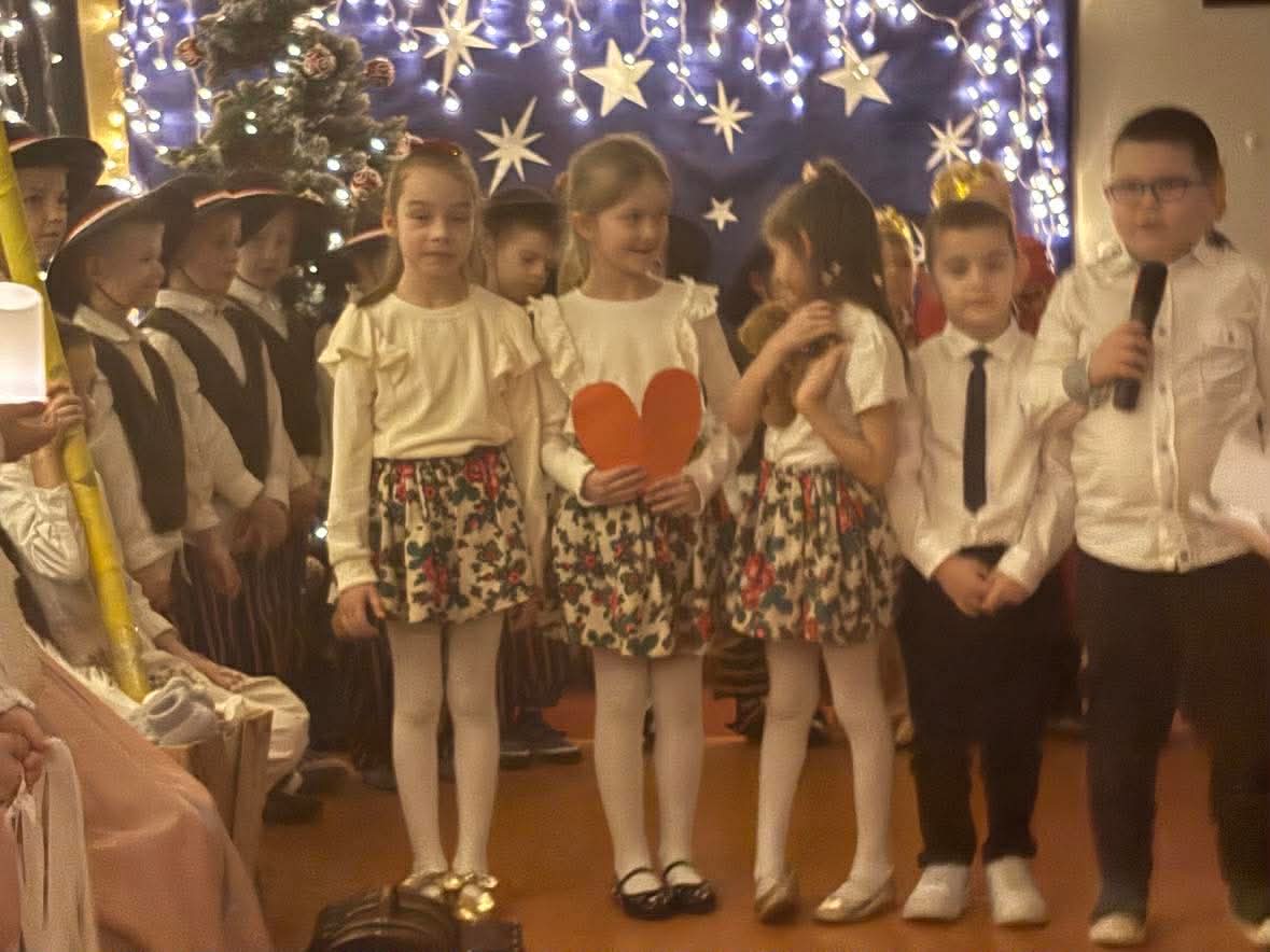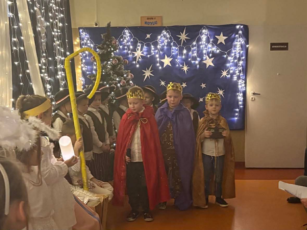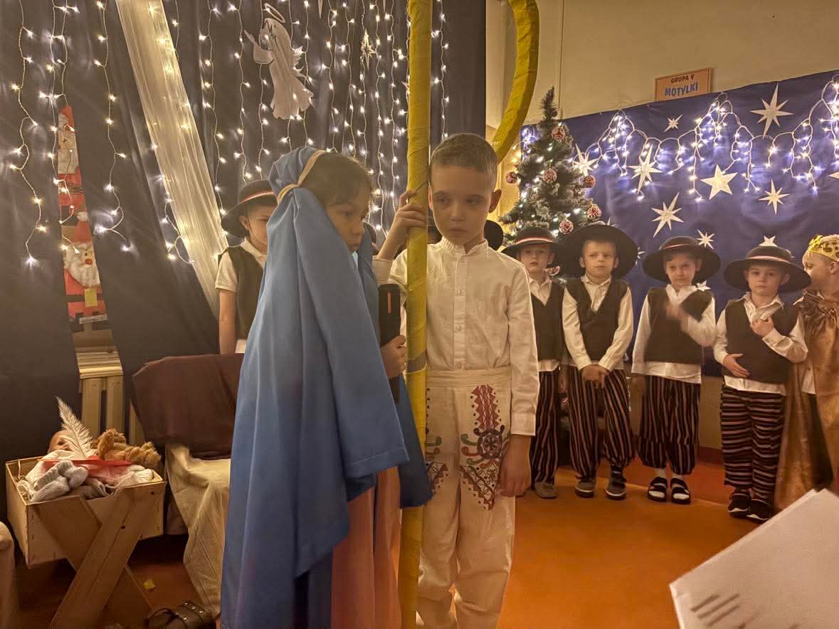 W magicznej, świątecznej atmosferze dzieci z grupy „Motylki” zaprezentowały wyjątkowe Jasełka bożonarodzeniowe. Mali artyści z wielkim zaangażowaniem wcielili się w swoje role, opowiadając historię narodzin Pana Jezusa poprzez wiersze, piosenki i taniec. Kolorowe stroje, piękna scenografia oraz radosny śpiew stworzyły niezapomniany klimat, który wprowadził wszystkich w świąteczny nastrój. Występ był nie tylko okazją do zaprezentowania umiejętności dzieci, ale także do wspólnego przeżywania wartości takich jak miłość, dobroć i radość z bycia razem.