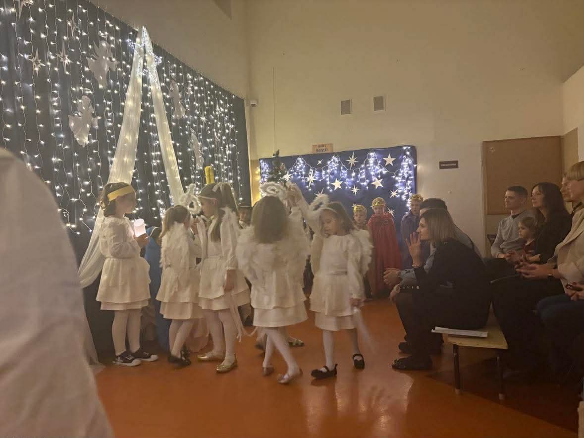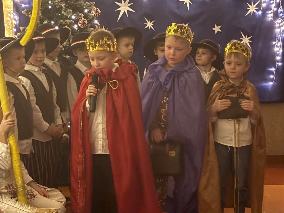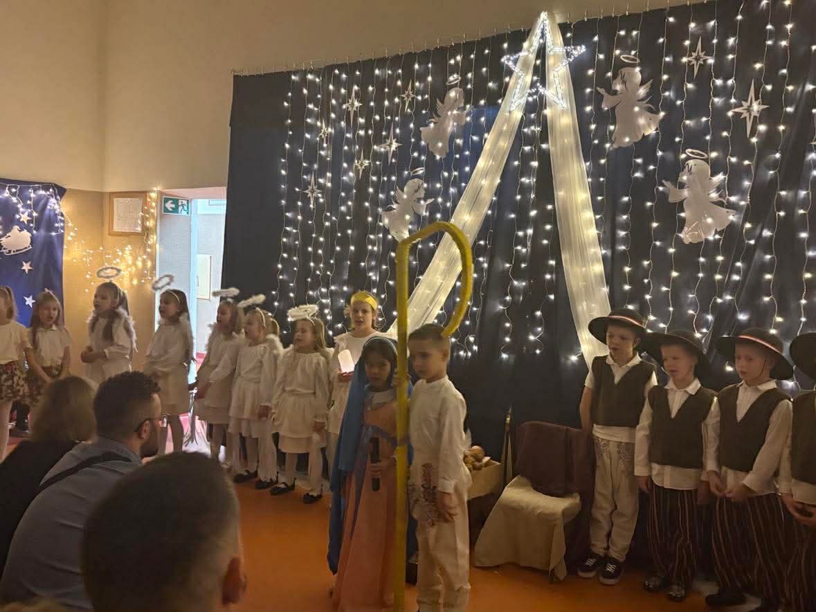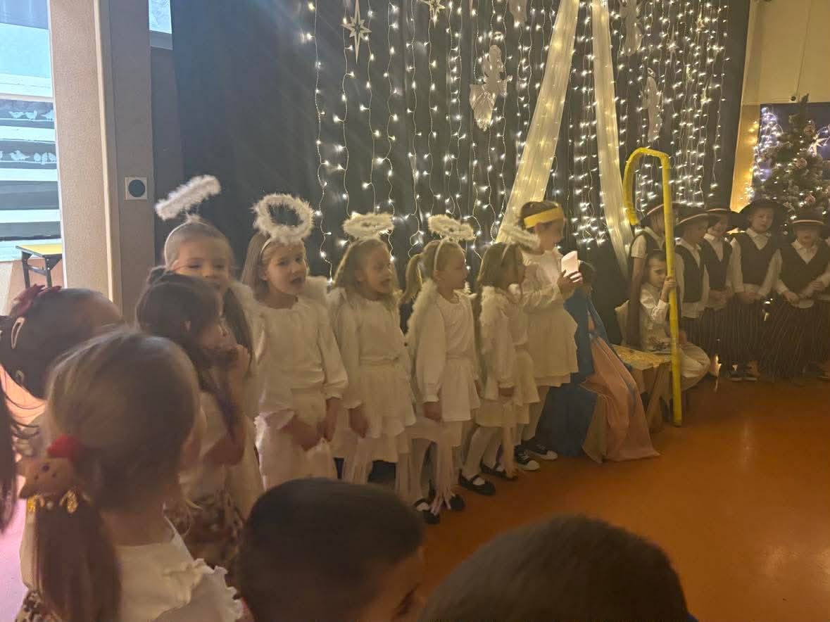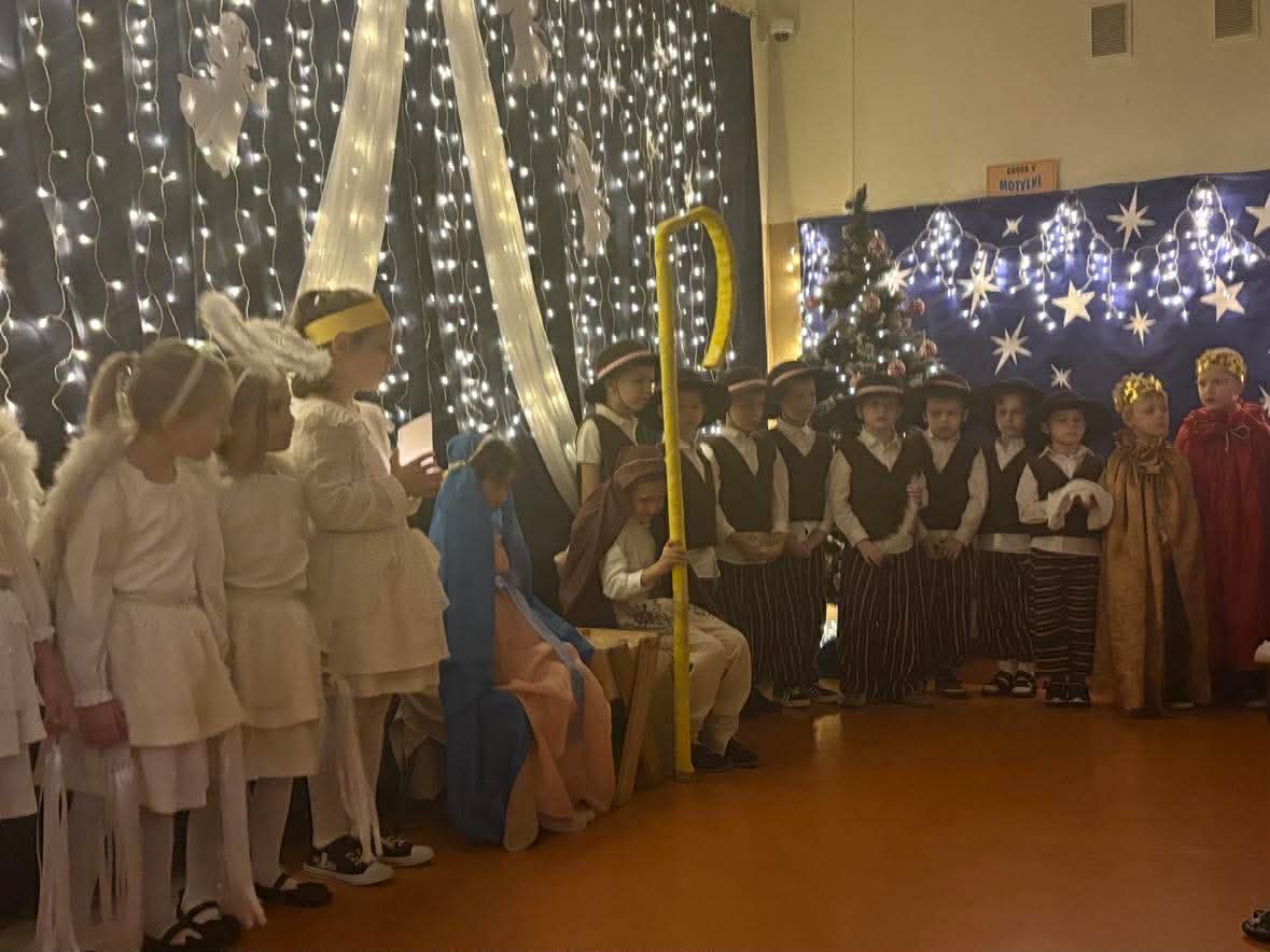 W magicznej, świątecznej atmosferze dzieci z grupy „Motylki” zaprezentowały wyjątkowe Jasełka bożonarodzeniowe. Mali artyści z wielkim zaangażowaniem wcielili się w swoje role, opowiadając historię narodzin Pana Jezusa poprzez wiersze, piosenki i taniec. Kolorowe stroje, piękna scenografia oraz radosny śpiew stworzyły niezapomniany klimat, który wprowadził wszystkich w świąteczny nastrój. Występ był nie tylko okazją do zaprezentowania umiejętności dzieci, ale także do wspólnego przeżywania wartości takich jak miłość, dobroć i radość z bycia razem.