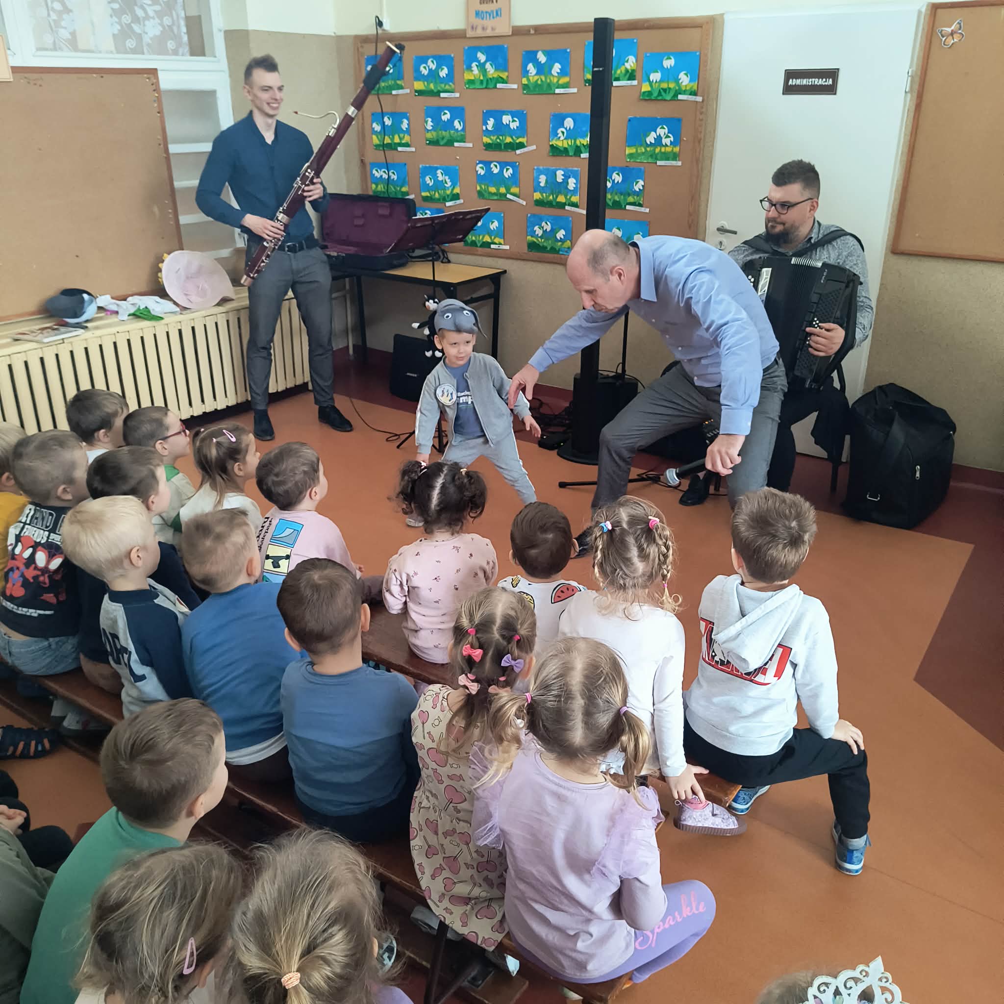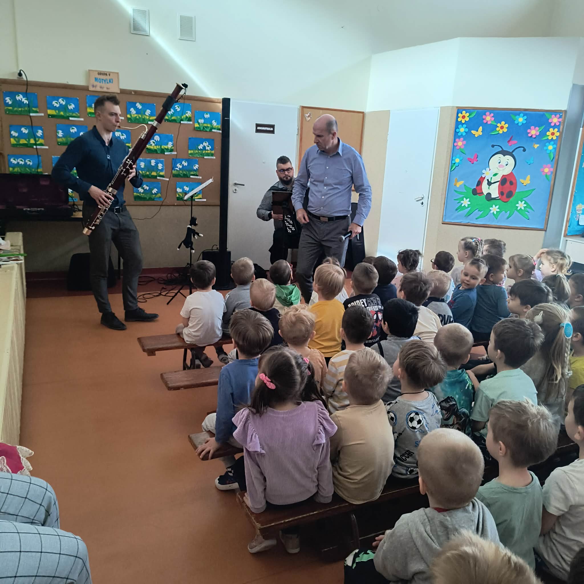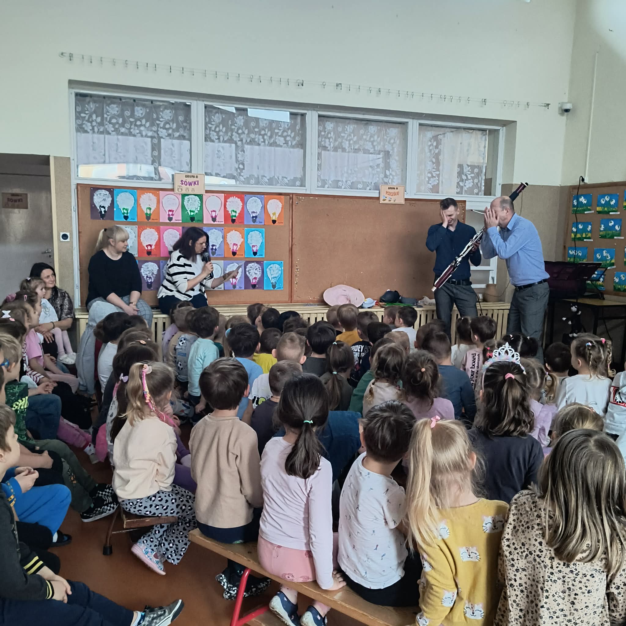 Dzisiaj w naszym przedszkolu gościła "Filharmonia na kółkach" z koncertem pt. " Marcowa ballada o fagocie". Dzieci poznały budowę i dźwięk interesującego instrumentu jakim jest fagot. Wysłuchały utworów: "Cztery pory roku- wiosna", "Karnawał zwierząt", znaną wszystkim piosenkę "Stary niedźwiedź mocno śpi", a także "Ballady o kocie i fagocie".Wspaniały koncert został nagrodzony gromkimi brawami.