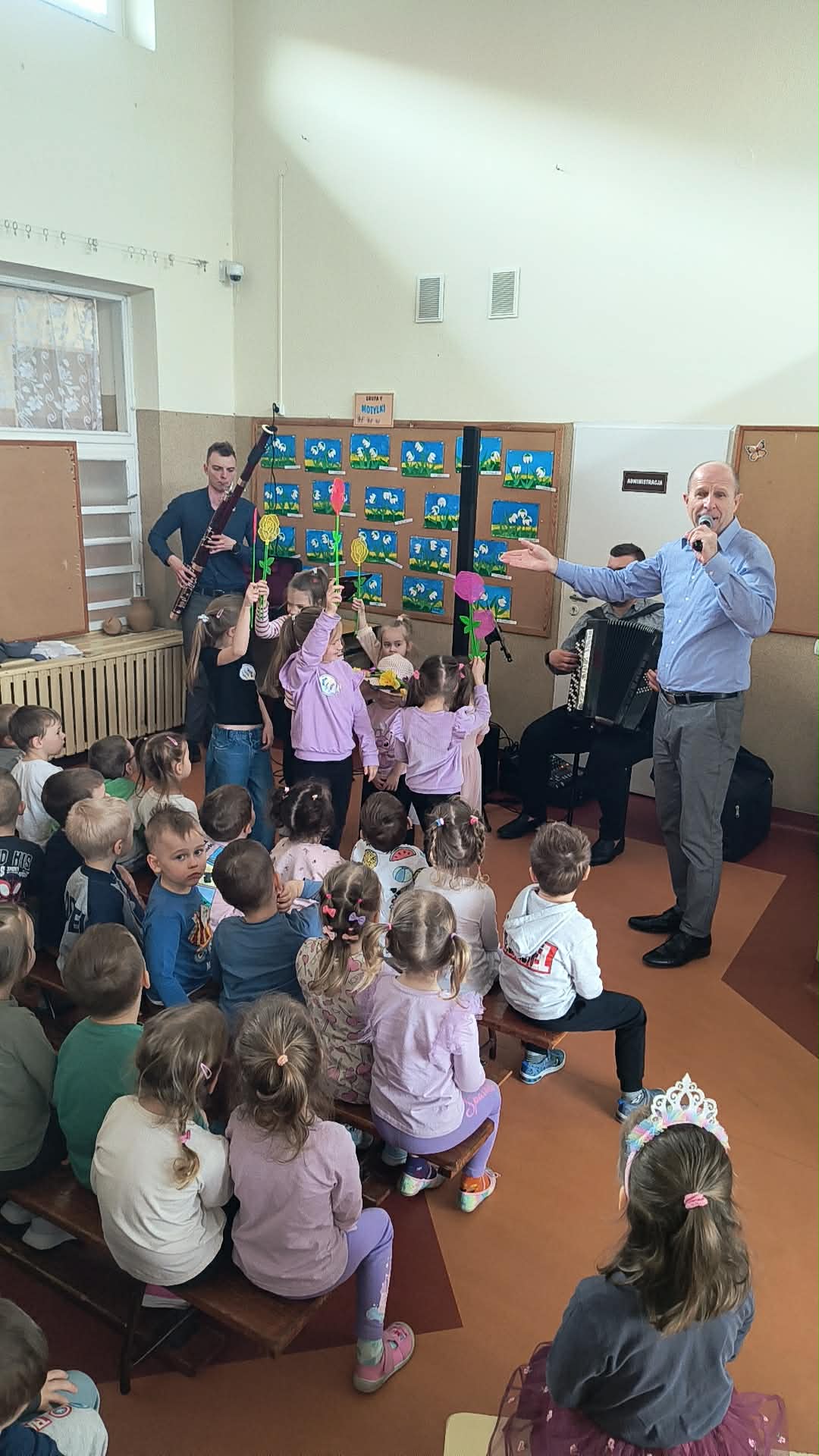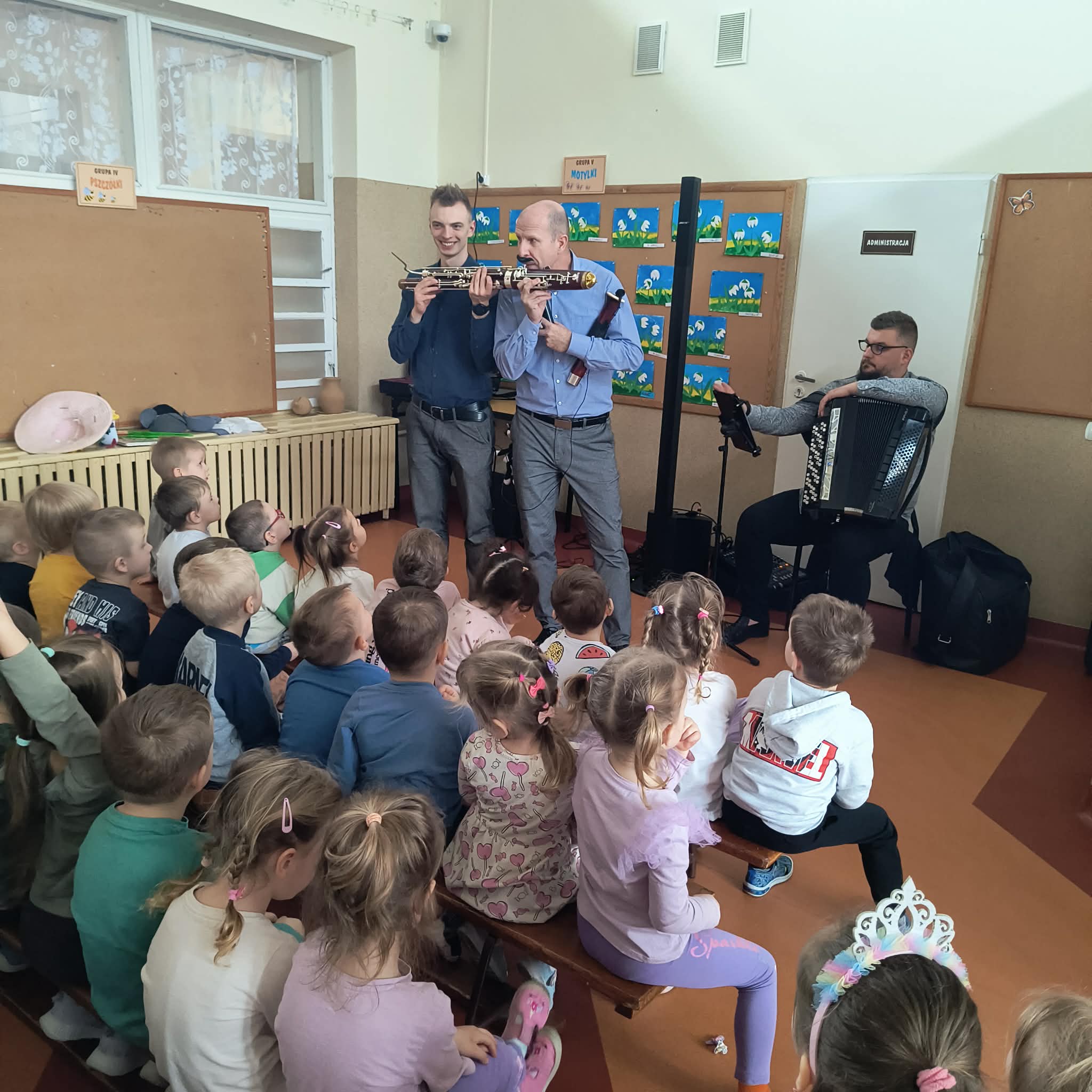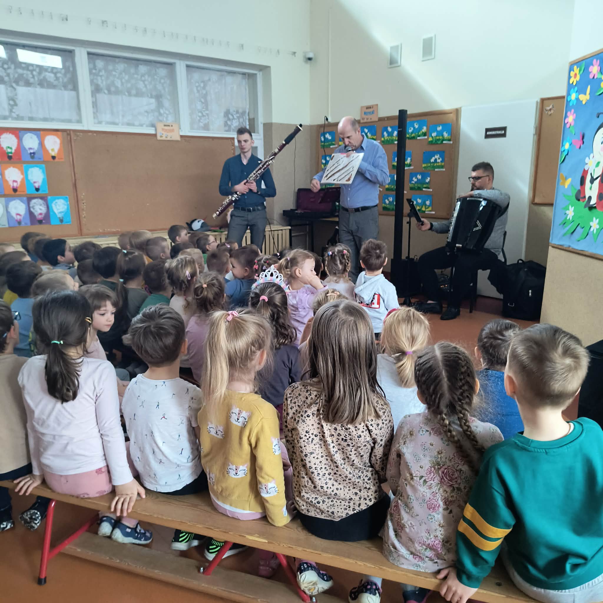Dzisiaj w naszym przedszkolu gościła "Filharmonia na kółkach" z koncertem pt. " Marcowa ballada o fagocie". Dzieci poznały budowę i dźwięk interesującego instrumentu jakim jest fagot. Wysłuchały utworów: "Cztery pory roku- wiosna", "Karnawał zwierząt", znaną wszystkim piosenkę "Stary niedźwiedź mocno śpi", a także "Ballady o kocie i fagocie".Wspaniały koncert został nagrodzony gromkimi brawami.