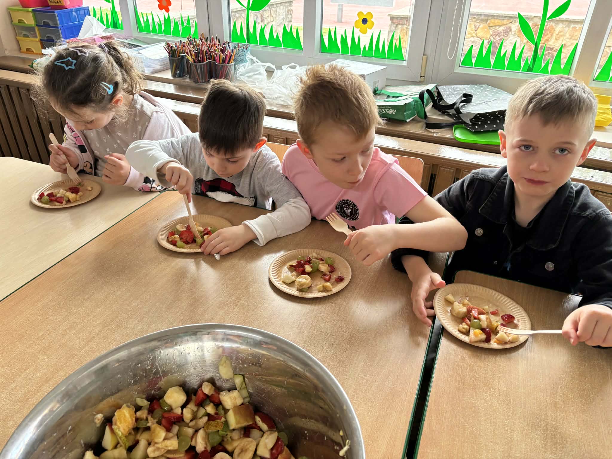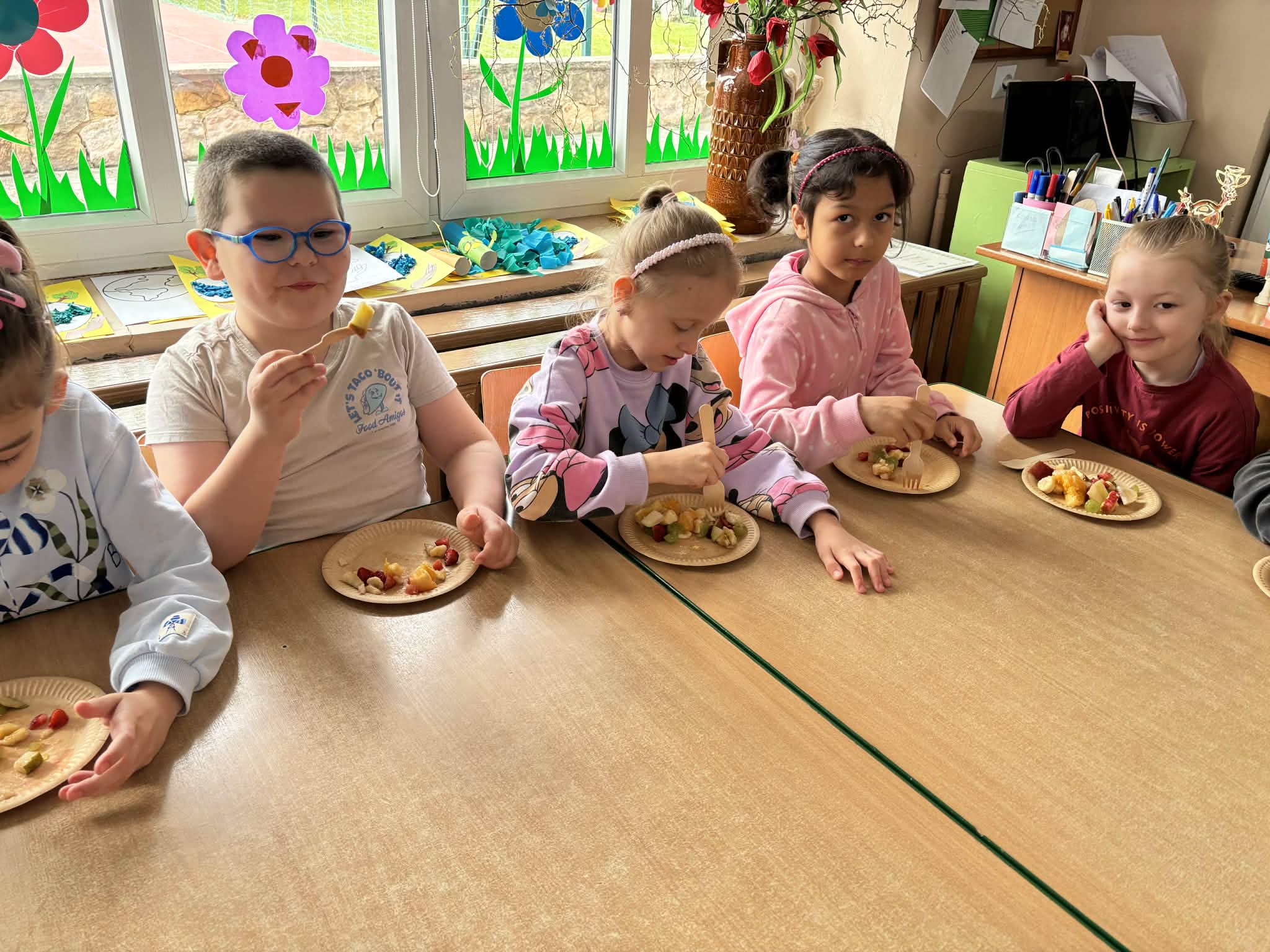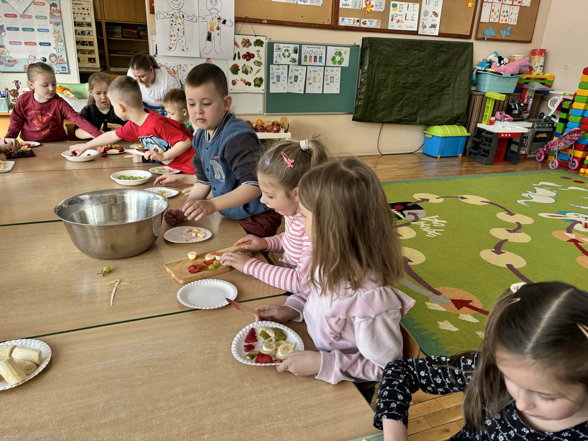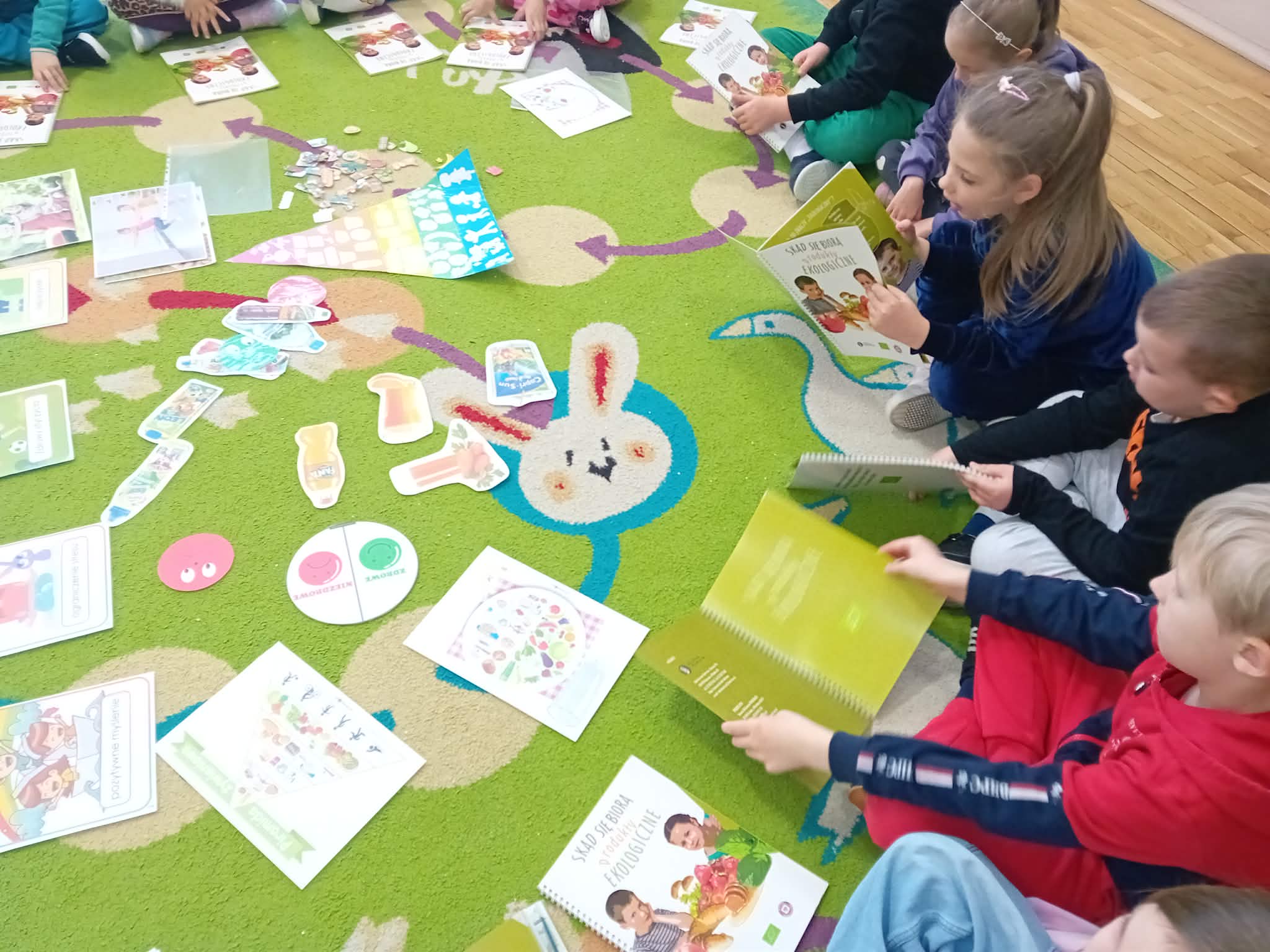 Program „Skąd się biorą produkty ekologiczne” został zrealizowany w grupie V ,,Motylki". Dzieci poprzez zajęcia edukacyjne i praktyczne poznały, czym są produkty ekologiczne, skąd pochodzą oraz dlaczego warto je wybierać. Podczas zajęć rozmawiały o zdrowym odżywianiu, oglądały materiały edukacyjne oraz uczestniczyły w przygotowaniu sałatki owocowej. Dzięki temu zdobyły wiedzę na temat naturalnych produktów i kształtowały zdrowe nawyki żywieniowe.