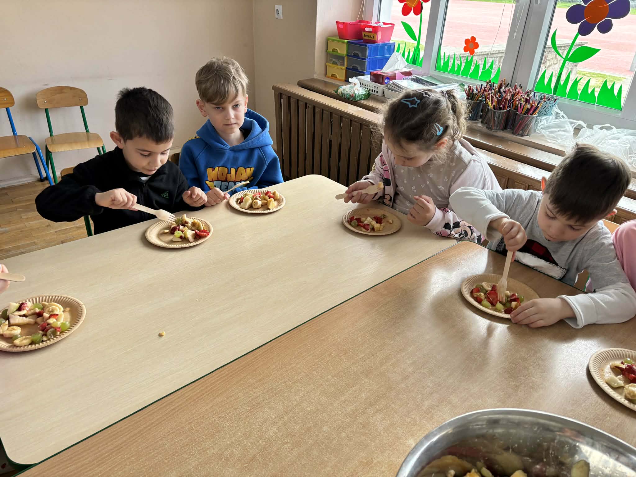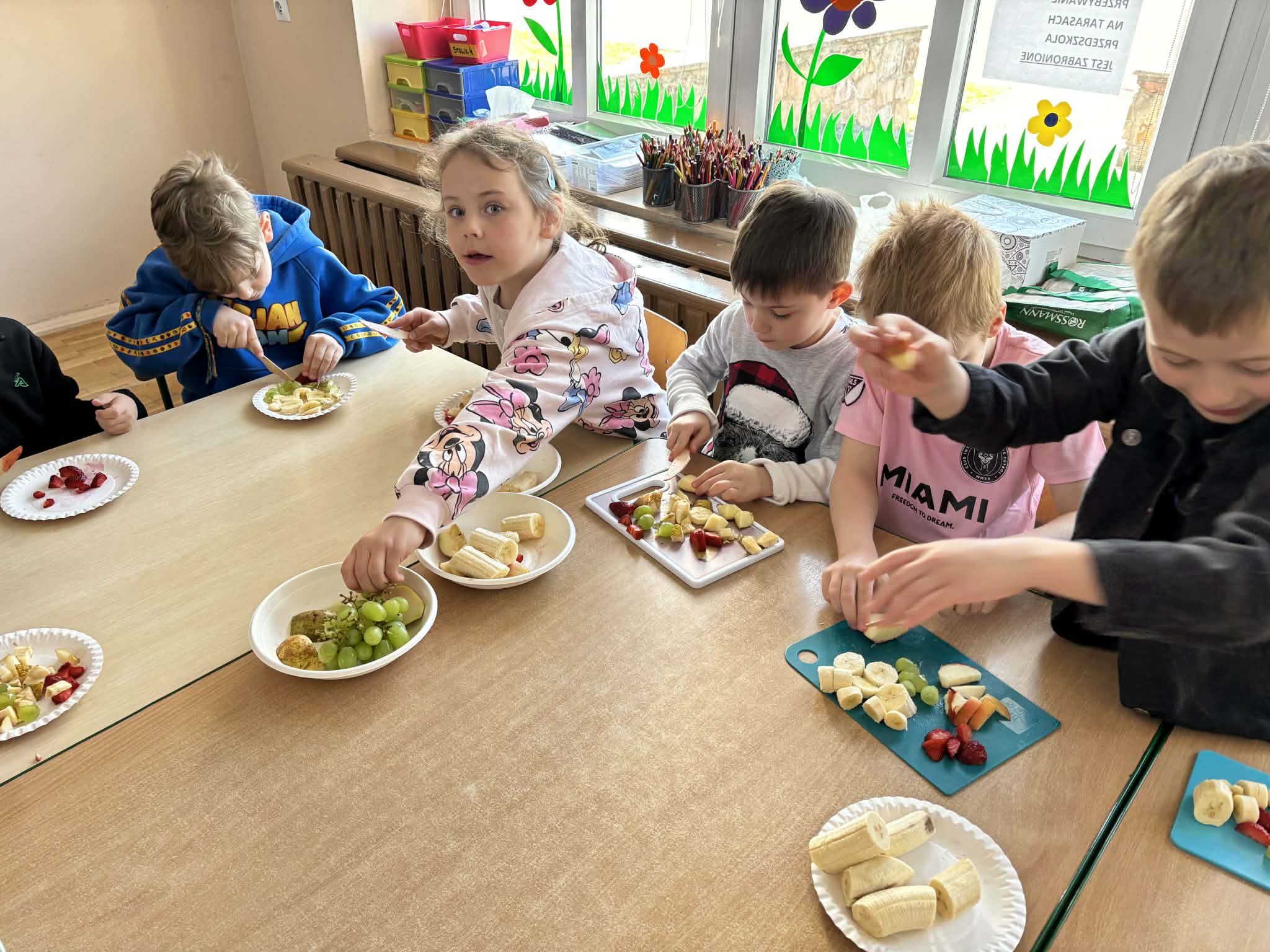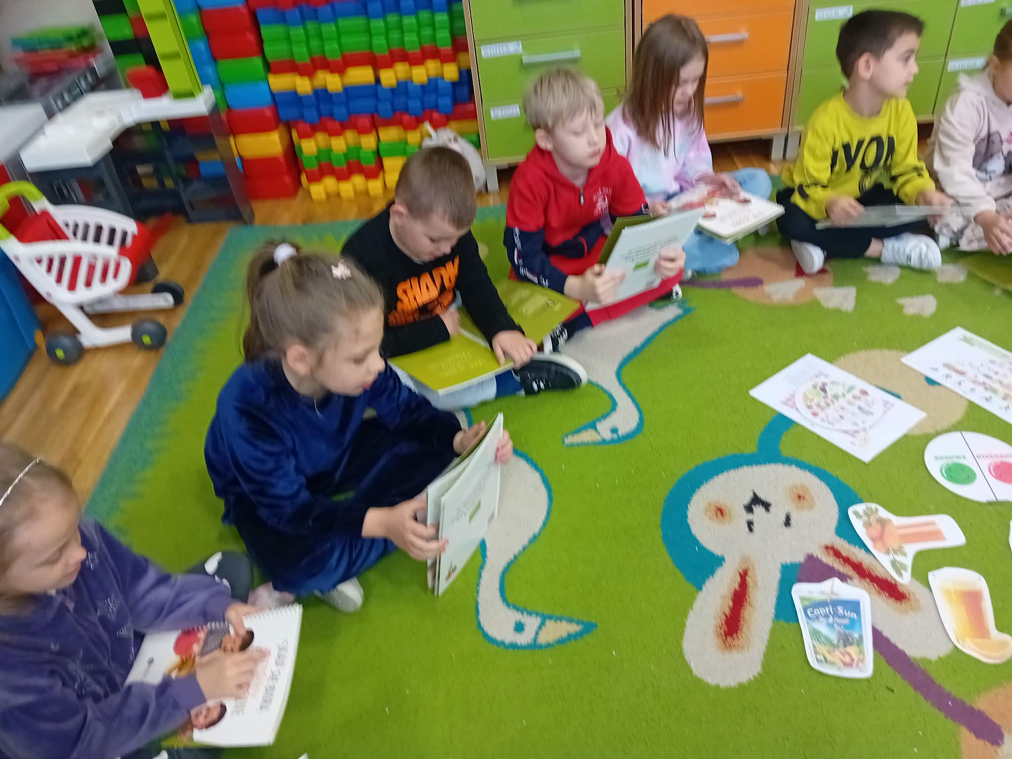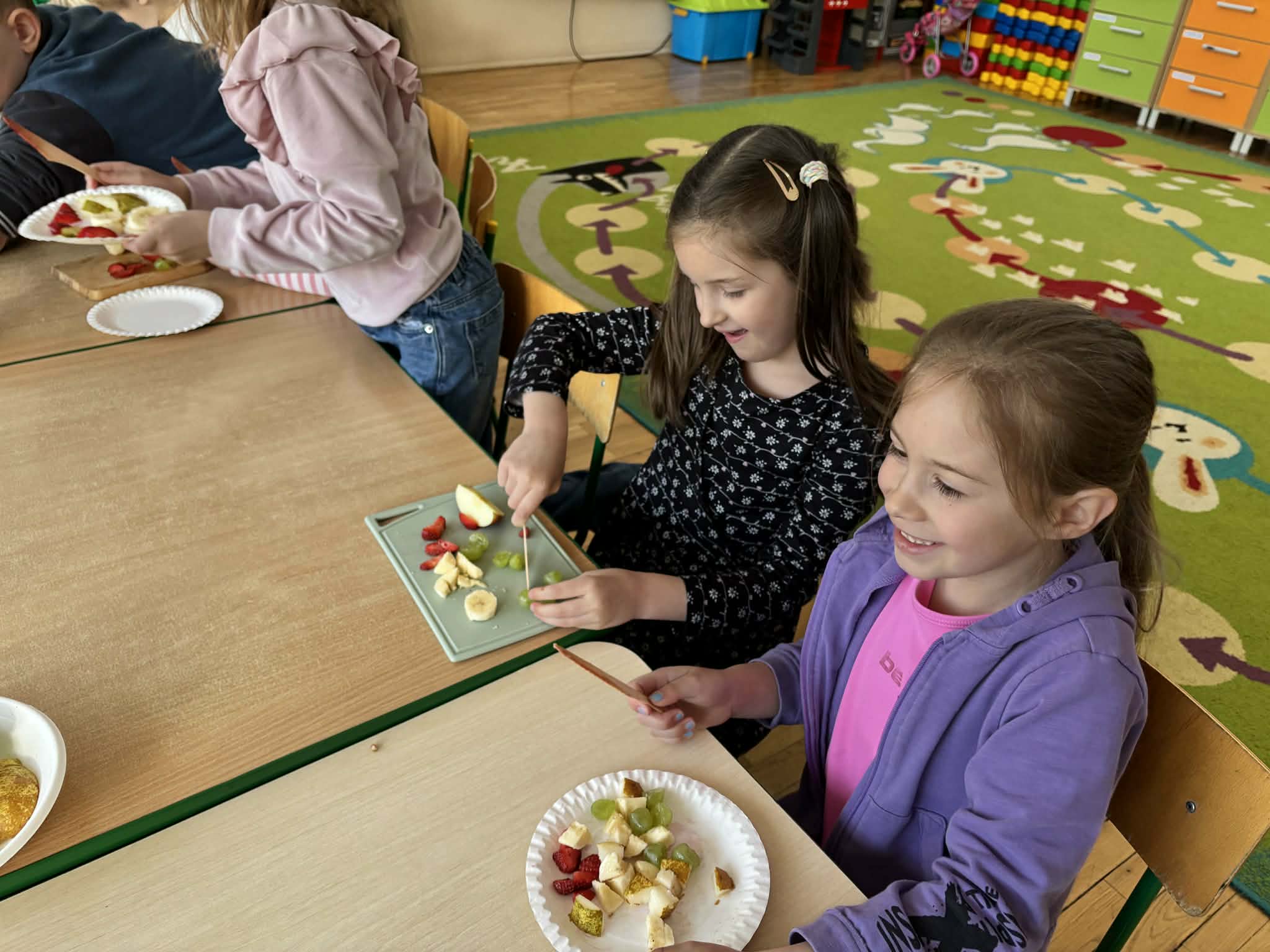 Program „Skąd się biorą produkty ekologiczne” został zrealizowany w grupie V ,,Motylki". Dzieci poprzez zajęcia edukacyjne i praktyczne poznały, czym są produkty ekologiczne, skąd pochodzą oraz dlaczego warto je wybierać. Podczas zajęć rozmawiały o zdrowym odżywianiu, oglądały materiały edukacyjne oraz uczestniczyły w przygotowaniu sałatki owocowej. Dzięki temu zdobyły wiedzę na temat naturalnych produktów i kształtowały zdrowe nawyki żywieniowe.