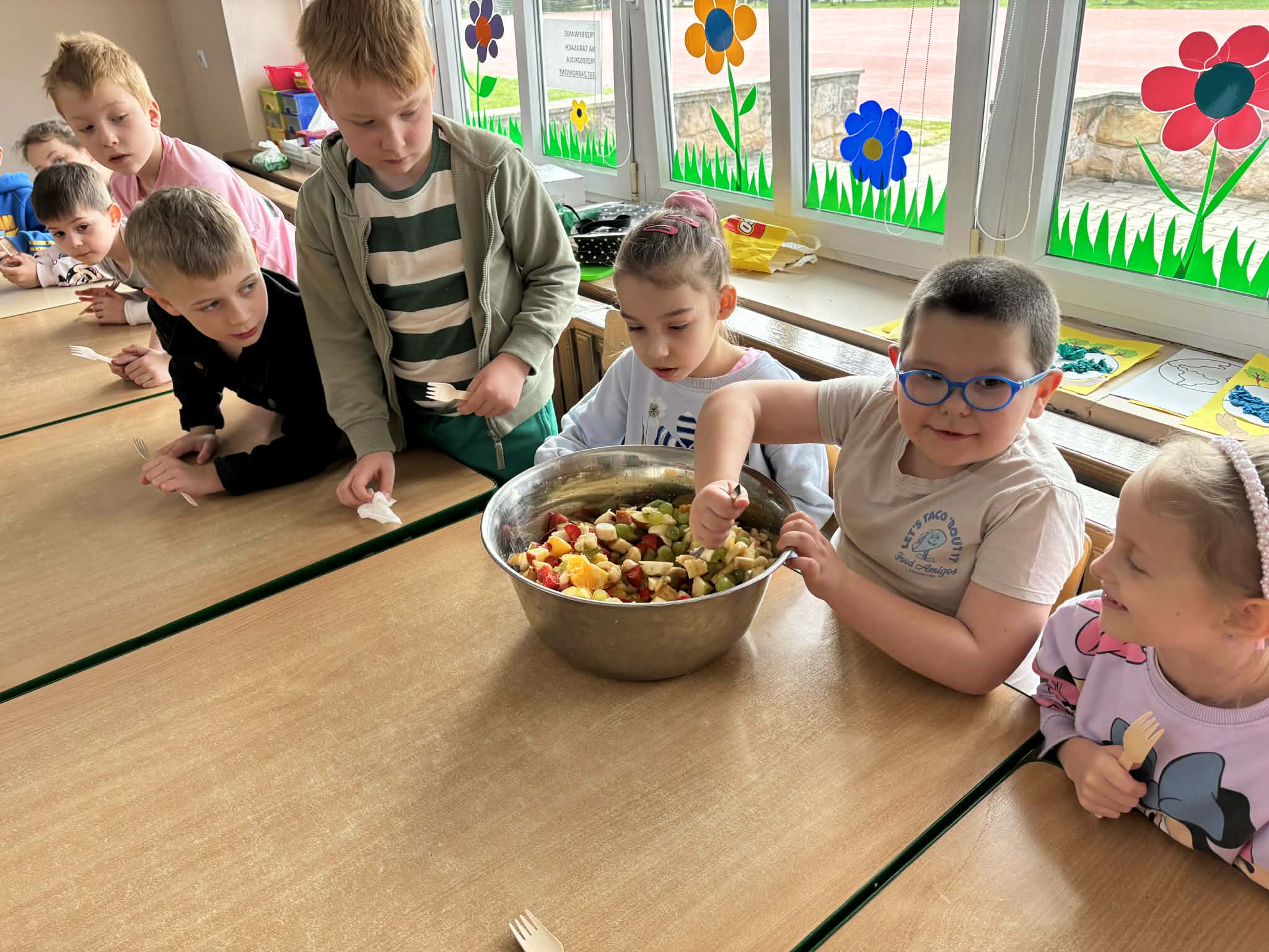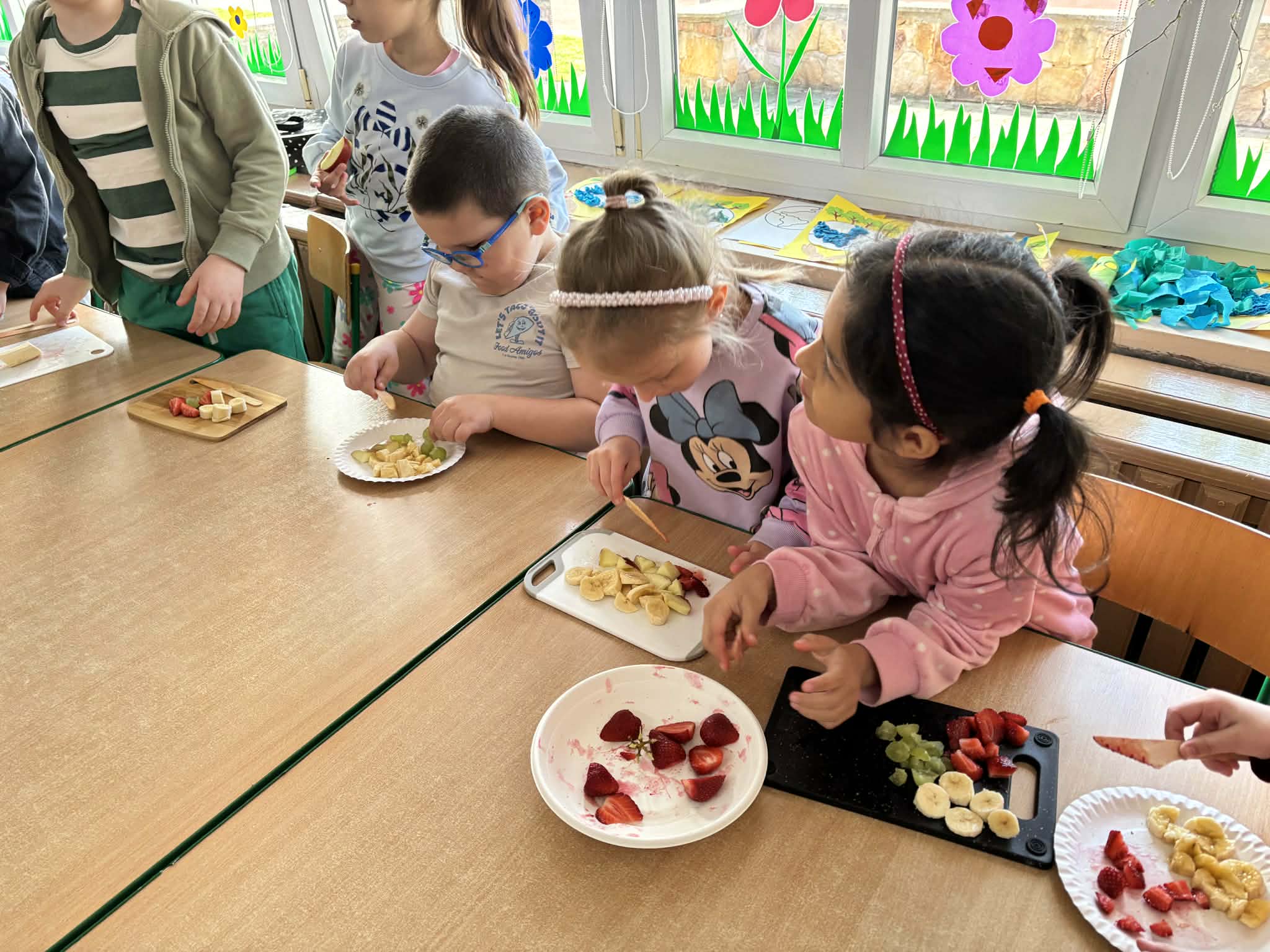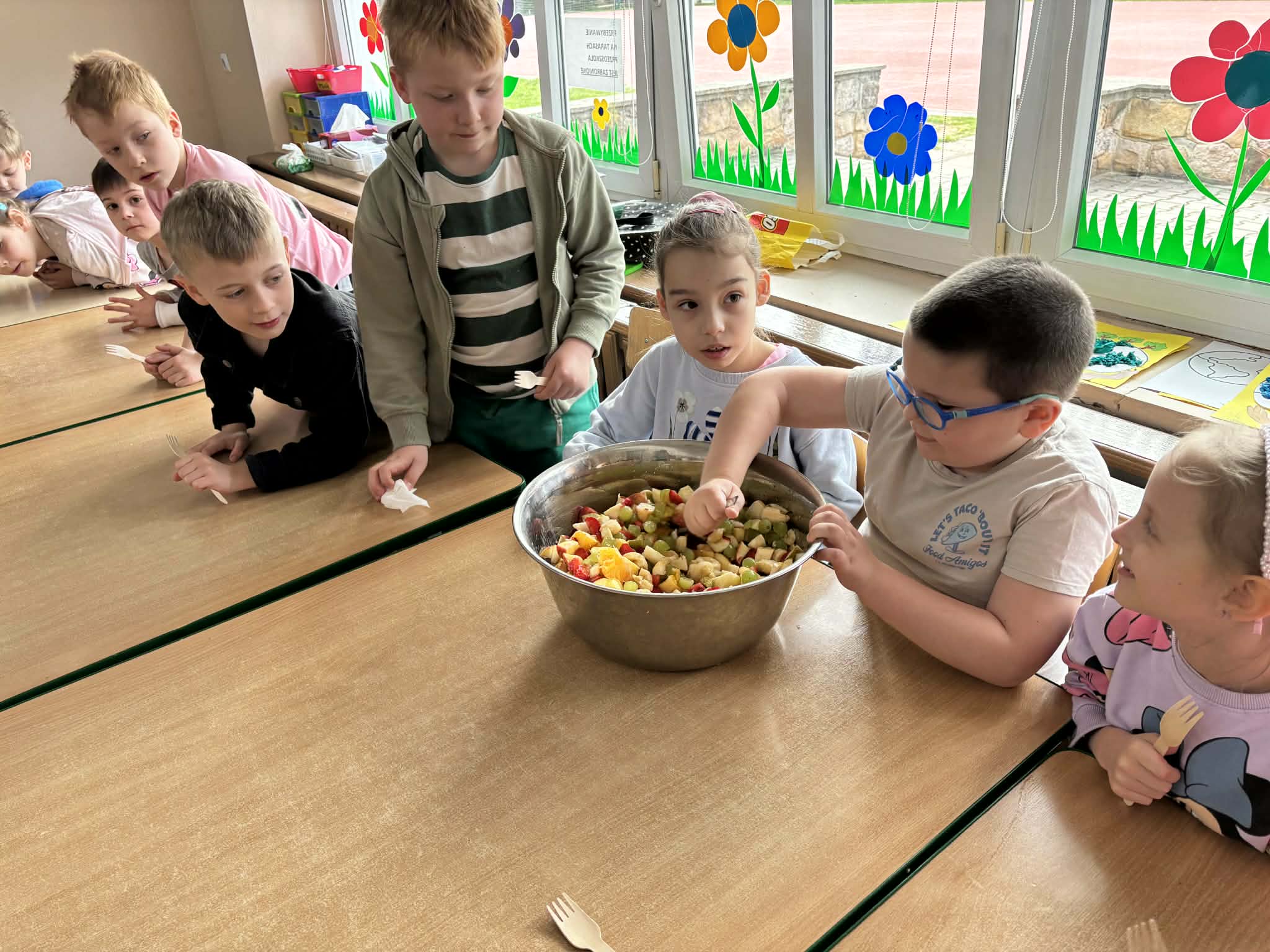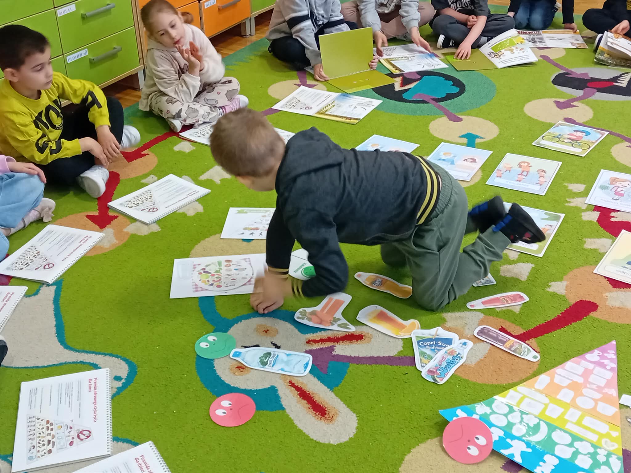 Program „Skąd się biorą produkty ekologiczne” został zrealizowany w grupie V ,,Motylki". Dzieci poprzez zajęcia edukacyjne i praktyczne poznały, czym są produkty ekologiczne, skąd pochodzą oraz dlaczego warto je wybierać. Podczas zajęć rozmawiały o zdrowym odżywianiu, oglądały materiały edukacyjne oraz uczestniczyły w przygotowaniu sałatki owocowej. Dzięki temu zdobyły wiedzę na temat naturalnych produktów i kształtowały zdrowe nawyki żywieniowe.