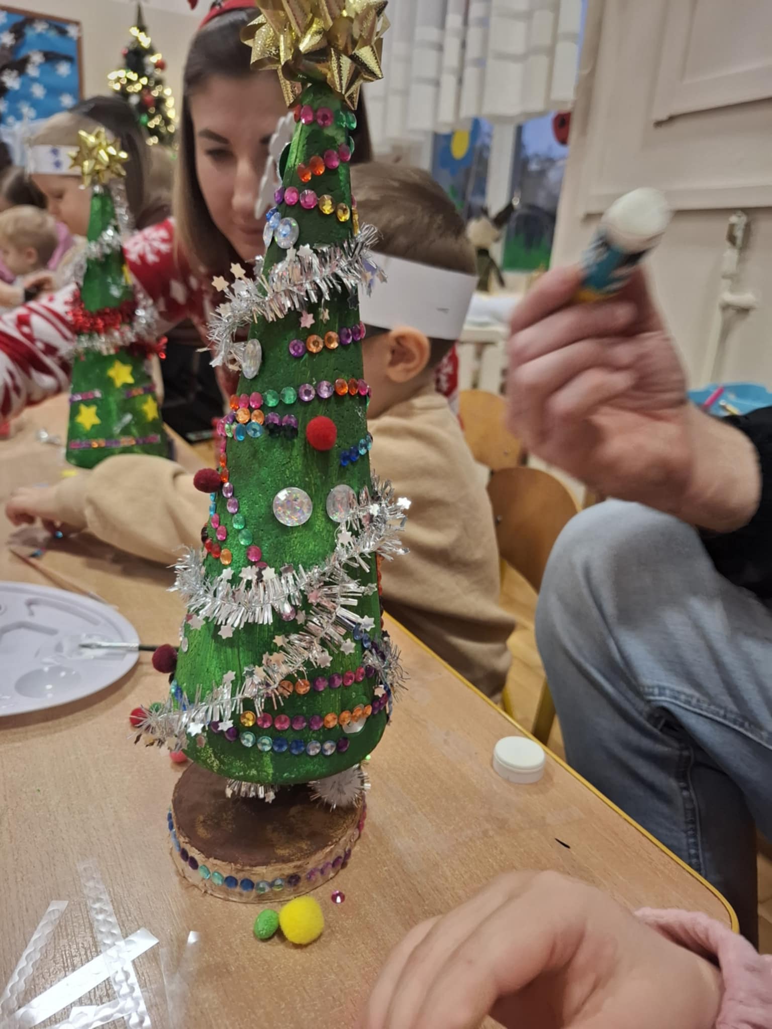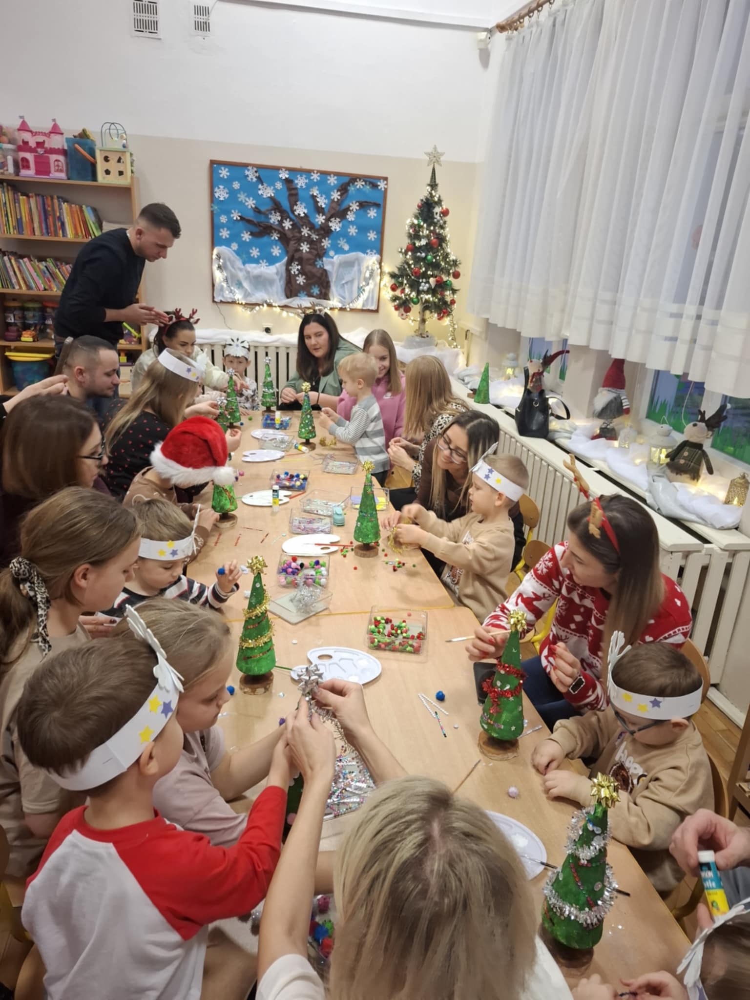 Przygotowania do Świąt Bożego Narodzenia coraz bliżej, dlatego też 10 grudnia w grupie Biedronek odbyły się warsztaty świąteczne.Twórcza zabawa, zaangażowanie, emocje i radosny czas spędzony razem – to najważniejsze cele tych warsztatów! Dzieci miały okazję nie tylko rozwijać swoje umiejętności, ale także cieszyć się wspólnym tworzeniem i budowaniem świątecznej atmosfery. To były naprawdę wyjątkowe chwile, podczas których dzieci i rodzice razem pracowali, świetnie się bawili i stworzyli niepowtarzalne, bożonarodzeniowe choinki. Dziękujemy za zaangażowanie!