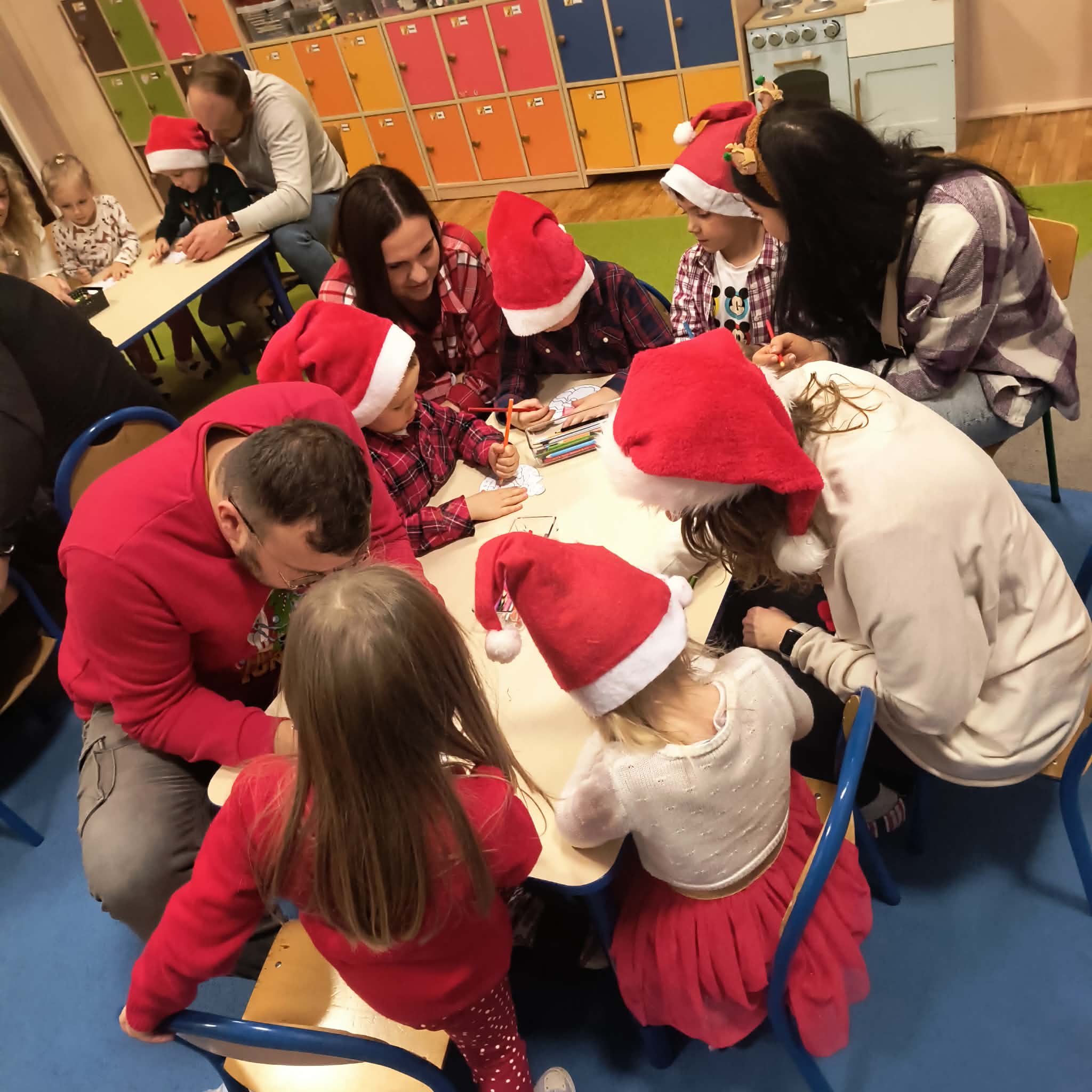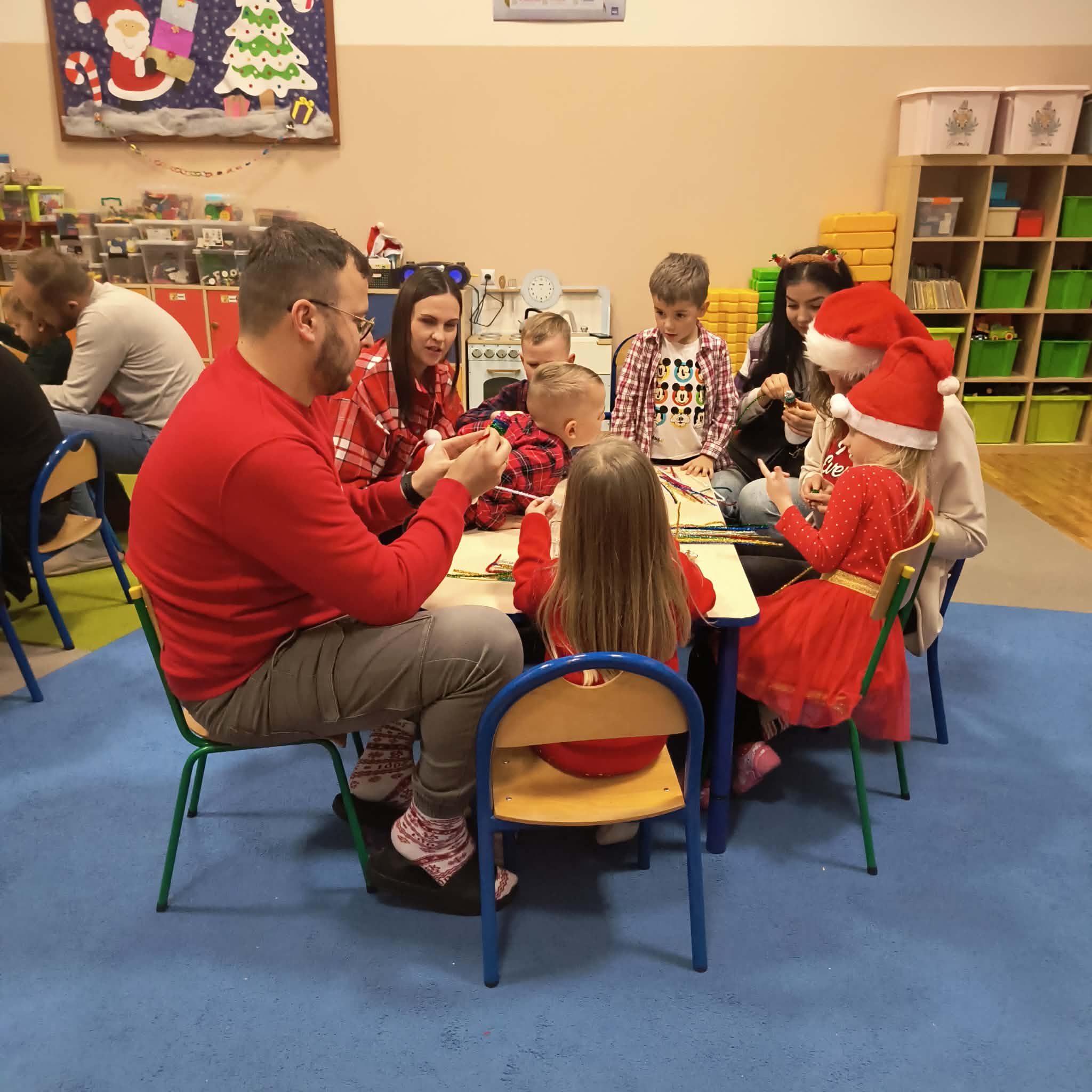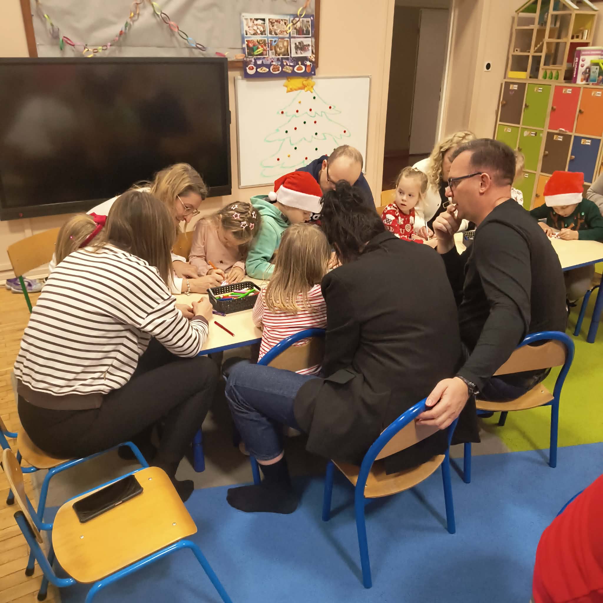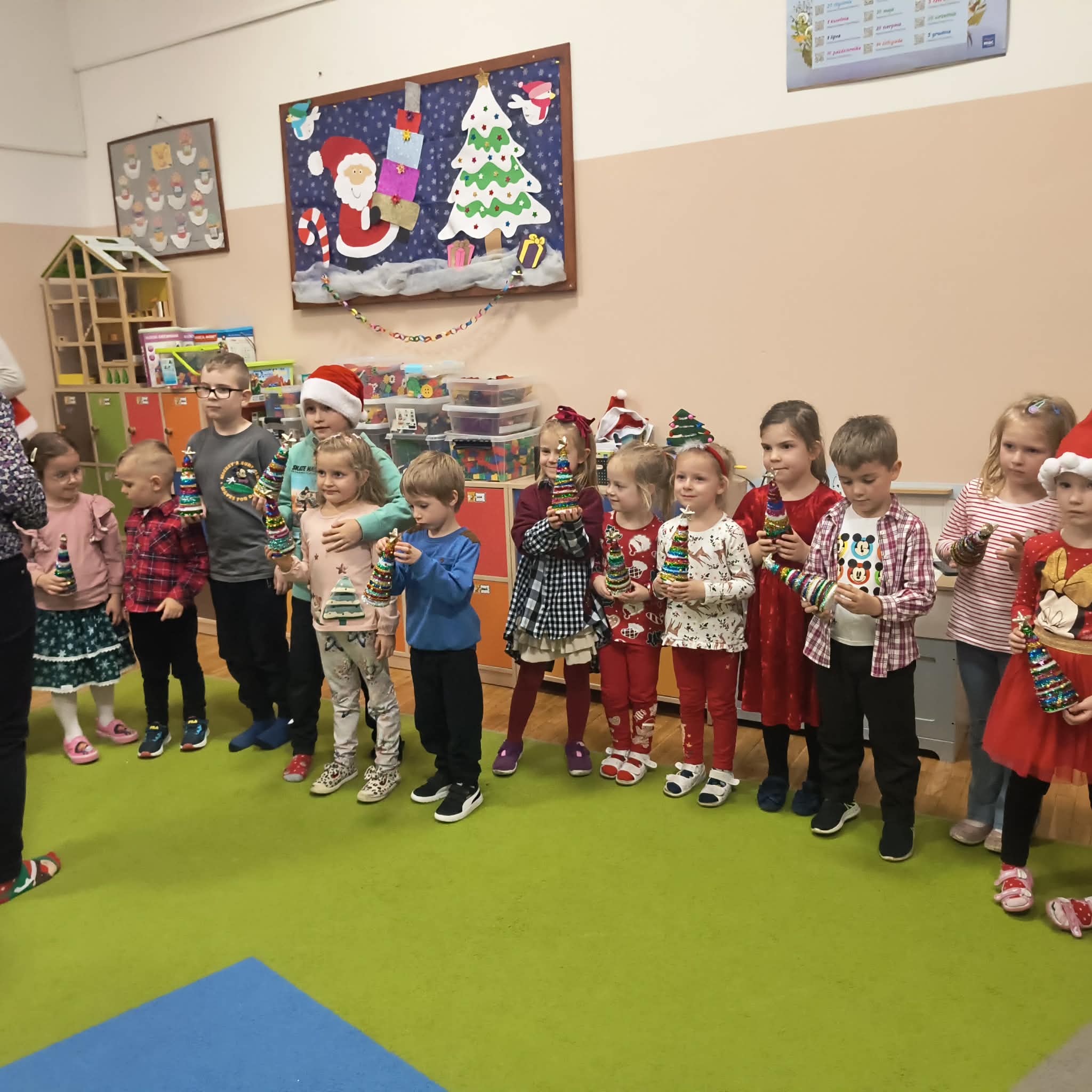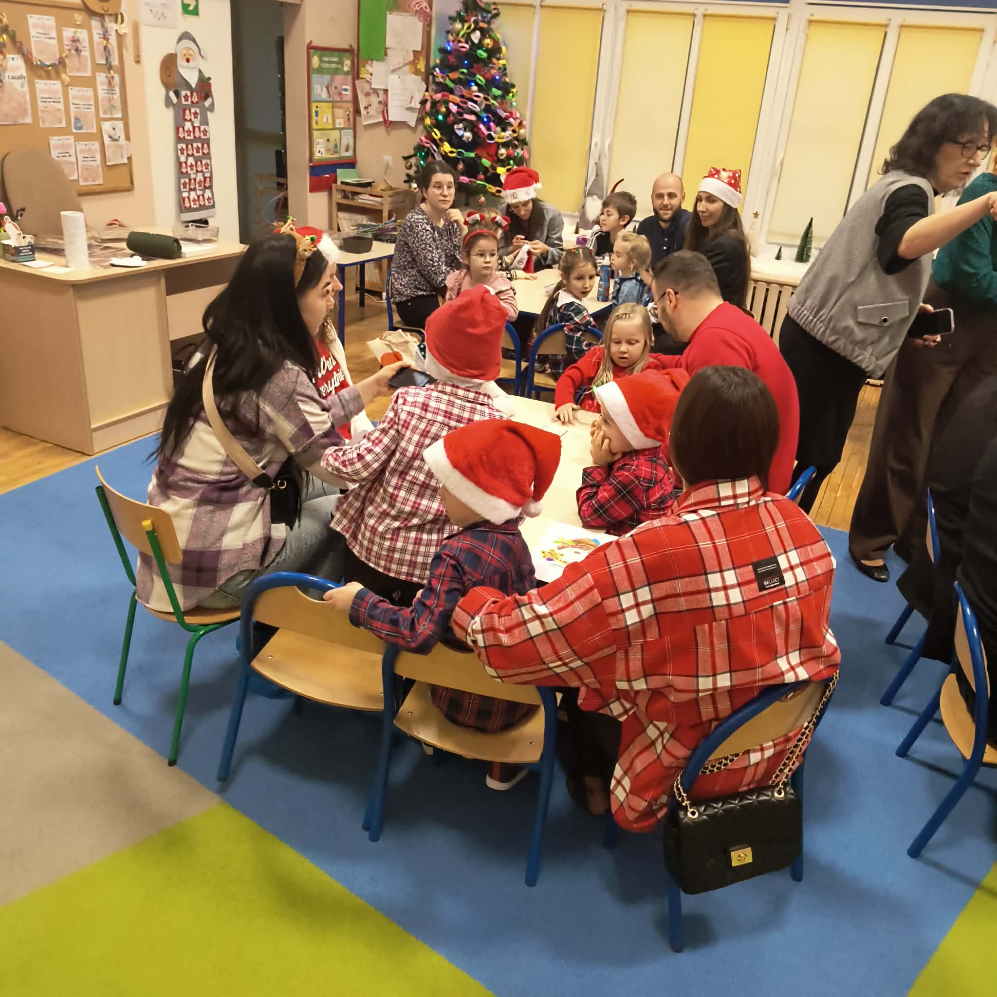 W środę 17 grudnia w grupie "Pszczółki" odbyły się Warsztaty Bożonarodzeniowe wprowadzające dzieci i rodziców w radosny nastrój oczekiwania na Boże Narodzenie. Spotkanie było okazją do świetnej zabawy, wspólnego kolędowania oraz miłego spędzenia czasu. Wspólnymi siłami powstała wyjątkowa choinka- pełna kolorów, kreatywności i świątecznej radości. Z całego serca dziękujemy Rodzicom, że tak licznie przybyliście na warsztaty oraz za zaangażowanie we wszystkie wykonywane zadania.
