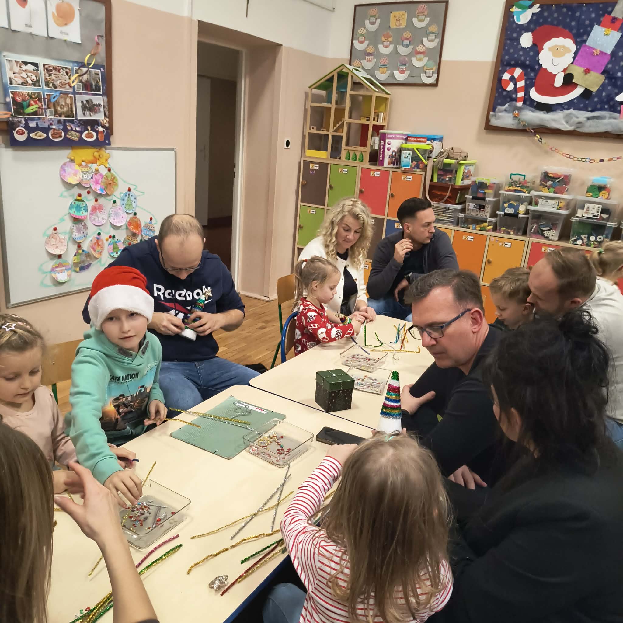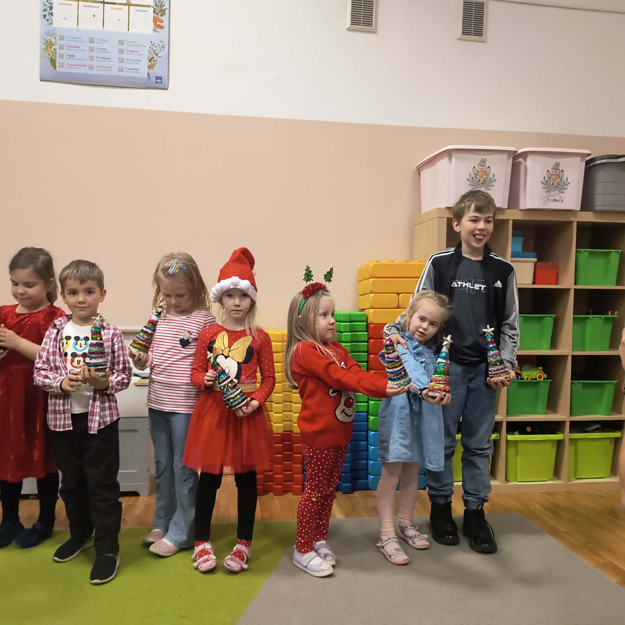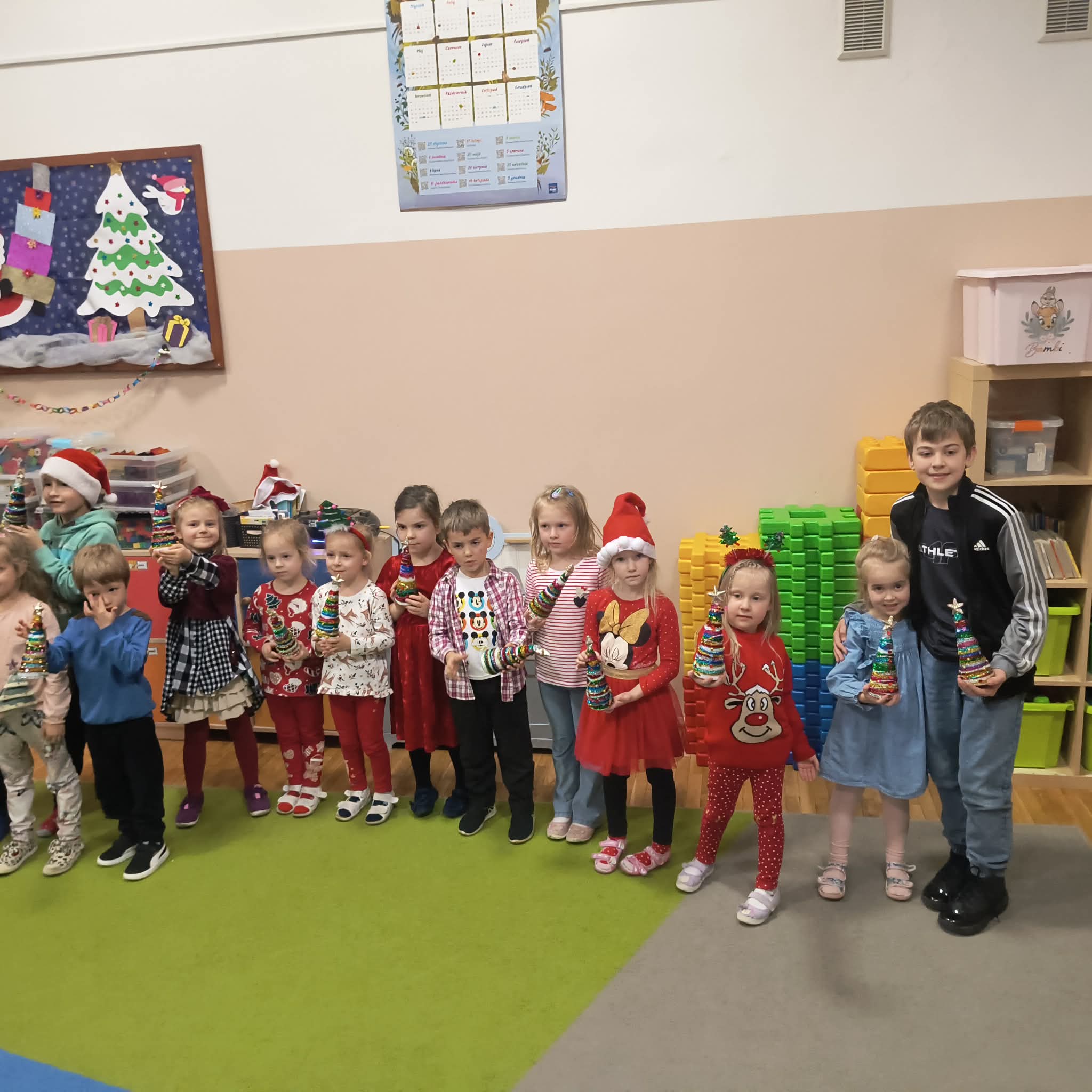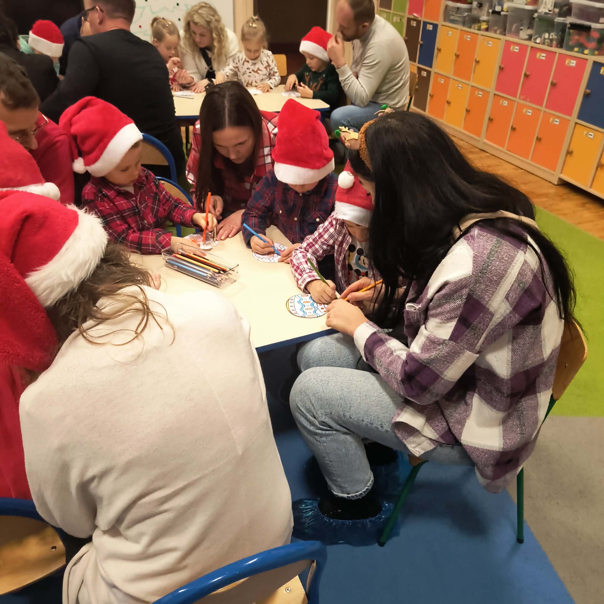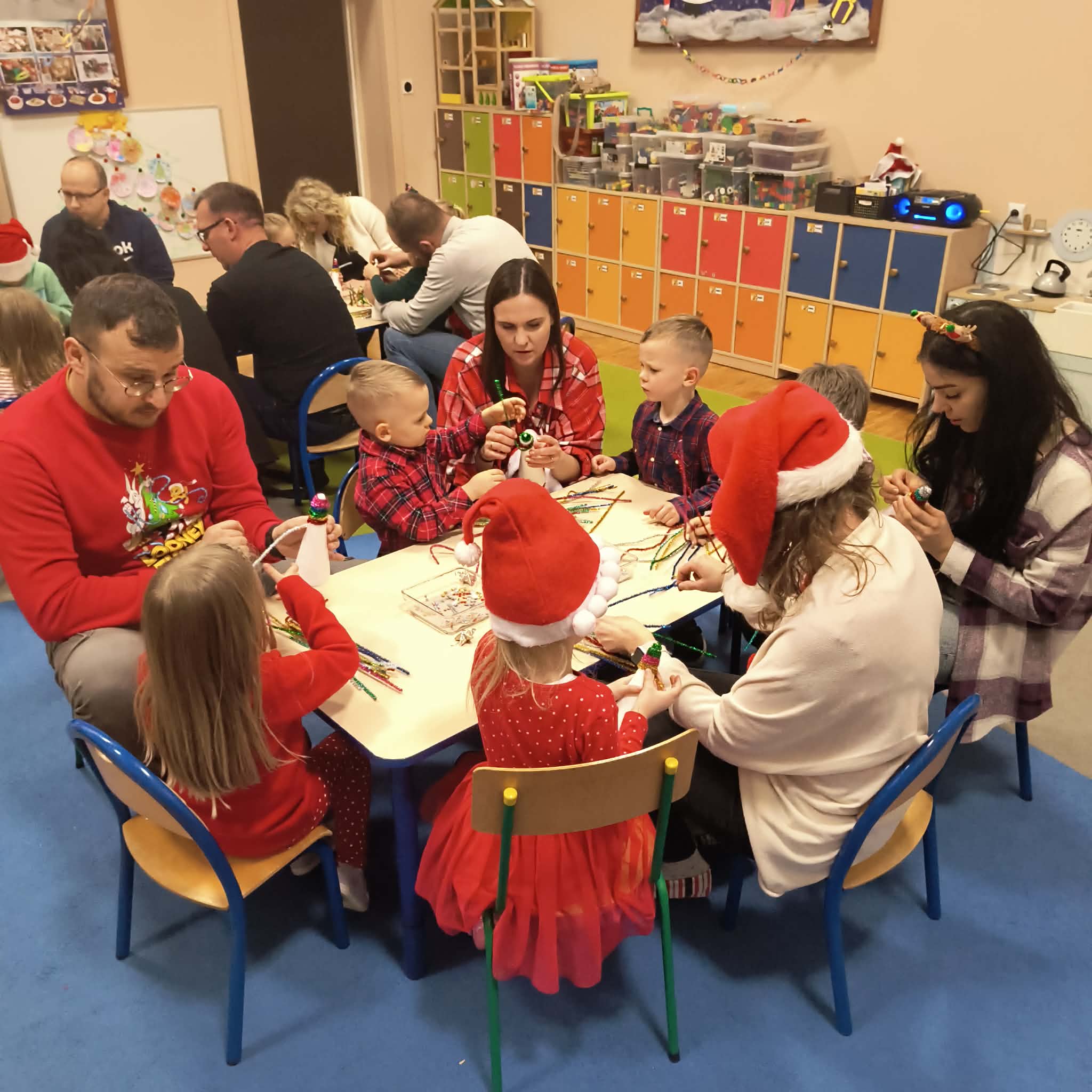 W środę 17 grudnia w grupie "Pszczółki" odbyły się Warsztaty Bożonarodzeniowe wprowadzające dzieci i rodziców w radosny nastrój oczekiwania na Boże Narodzenie. Spotkanie było okazją do świetnej zabawy, wspólnego kolędowania oraz miłego spędzenia czasu. Wspólnymi siłami powstała wyjątkowa choinka- pełna kolorów, kreatywności i świątecznej radości. Z całego serca dziękujemy Rodzicom, że tak licznie przybyliście na warsztaty oraz za zaangażowanie we wszystkie wykonywane zadania.