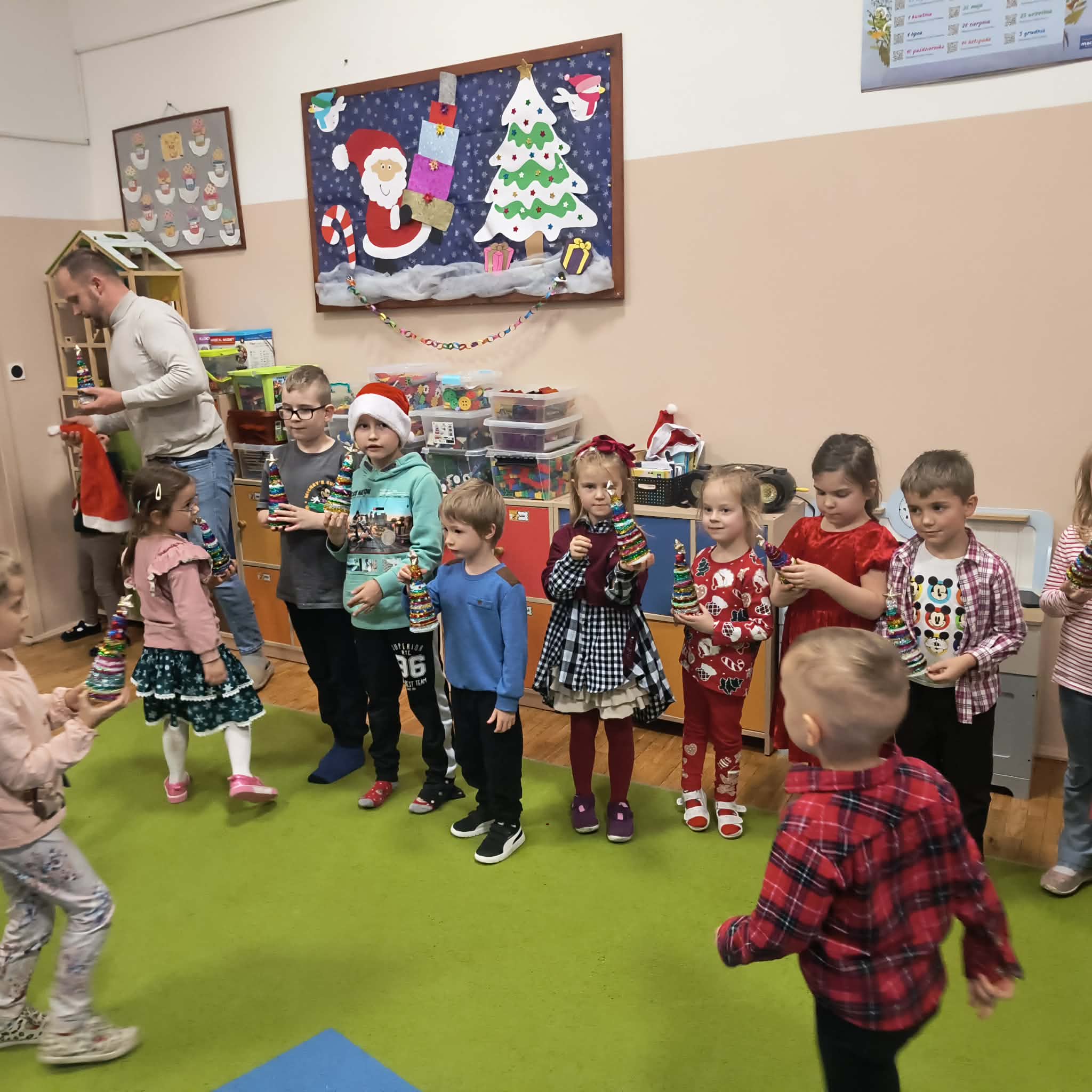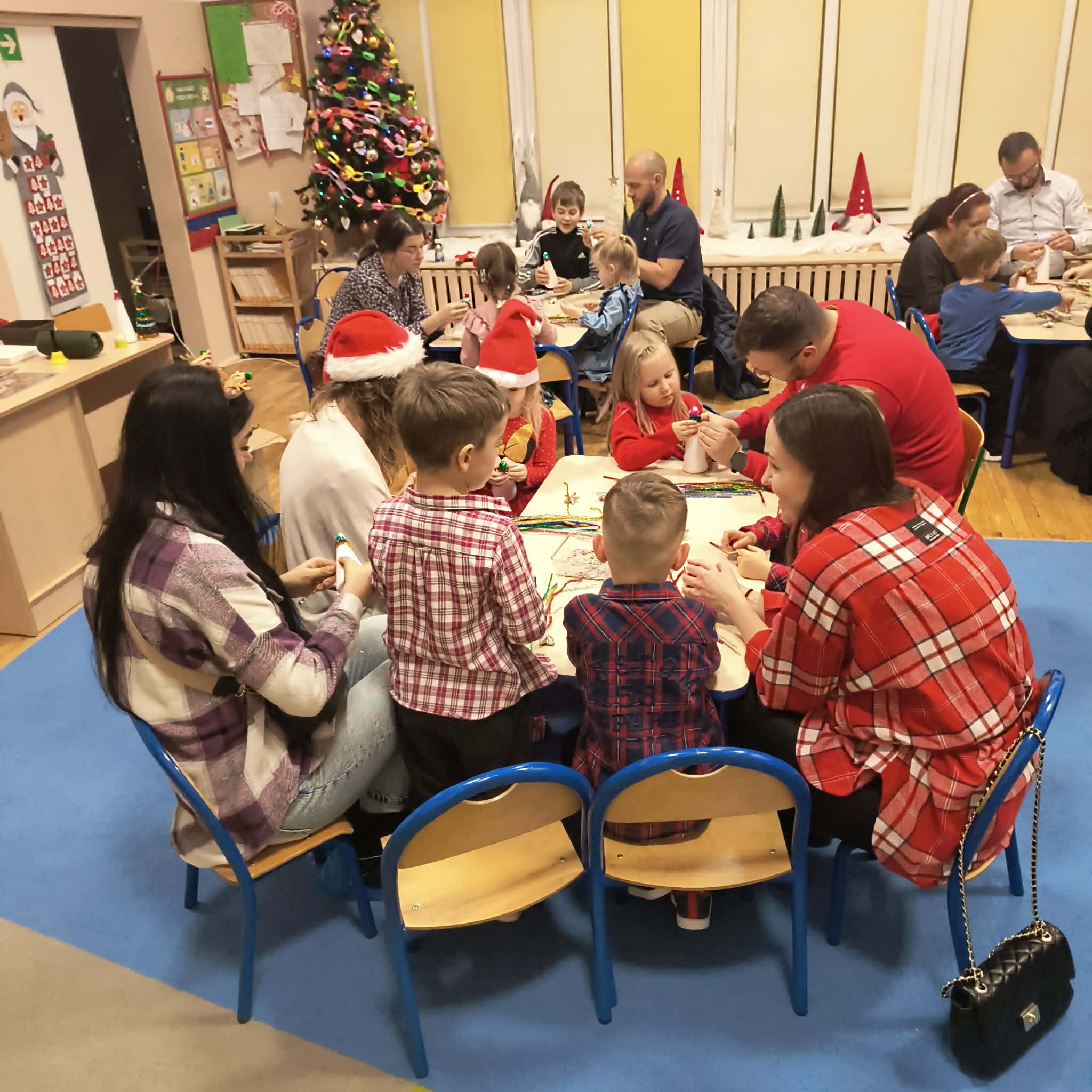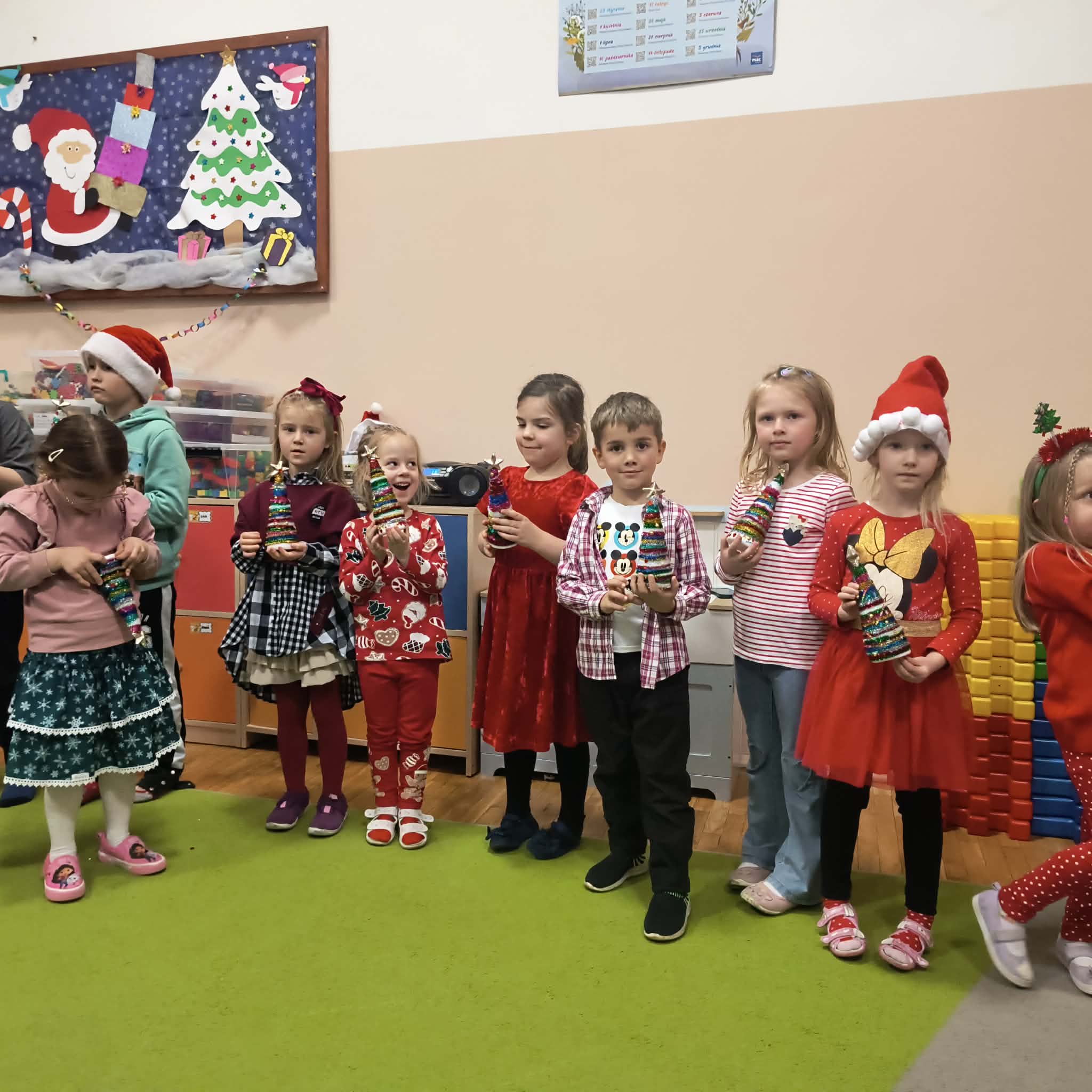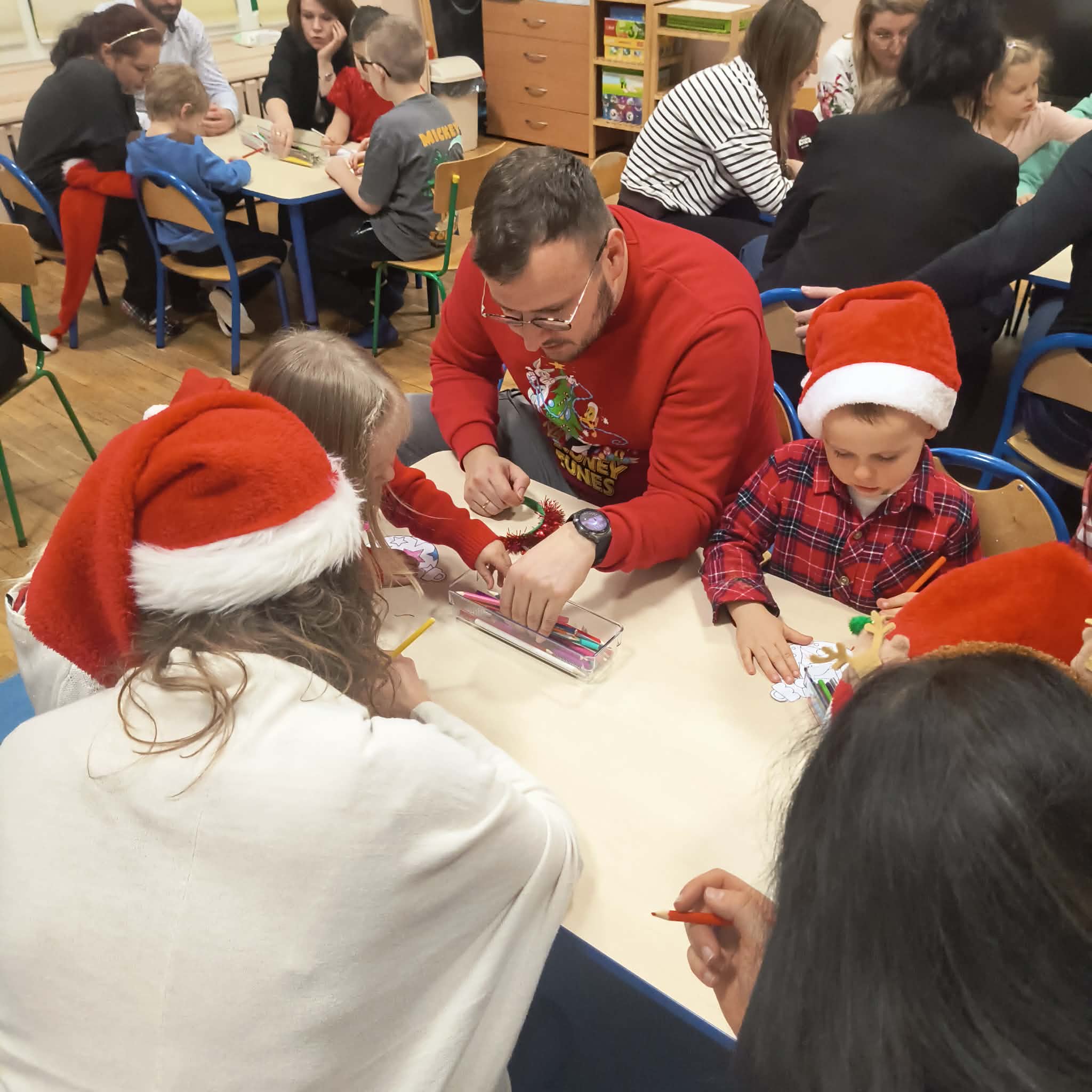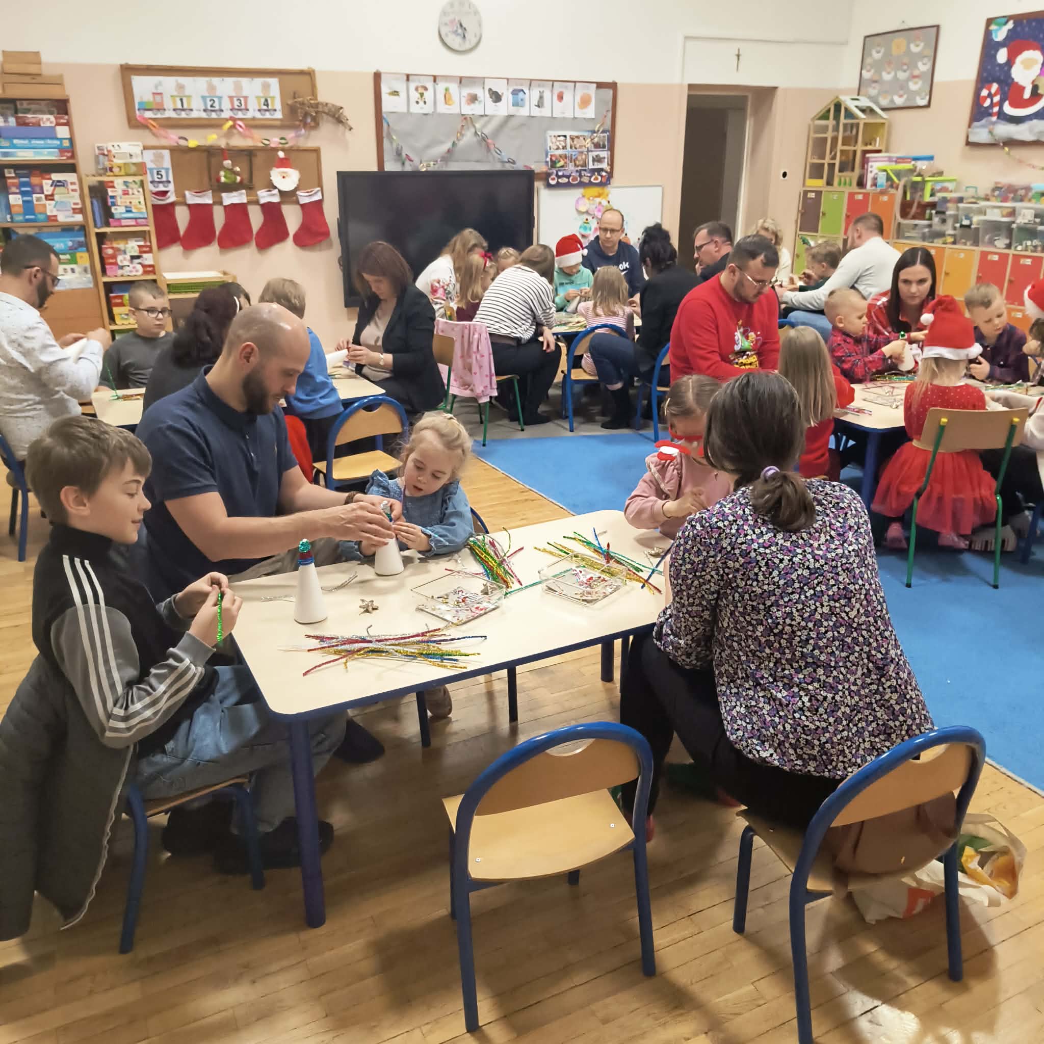 W środę 17 grudnia w grupie "Pszczółki" odbyły się Warsztaty Bożonarodzeniowe wprowadzające dzieci i rodziców w radosny nastrój oczekiwania na Boże Narodzenie. Spotkanie było okazją do świetnej zabawy, wspólnego kolędowania oraz miłego spędzenia czasu. Wspólnymi siłami powstała wyjątkowa choinka- pełna kolorów, kreatywności i świątecznej radości. Z całego serca dziękujemy Rodzicom, że tak licznie przybyliście na warsztaty oraz za zaangażowanie we wszystkie wykonywane zadania.
