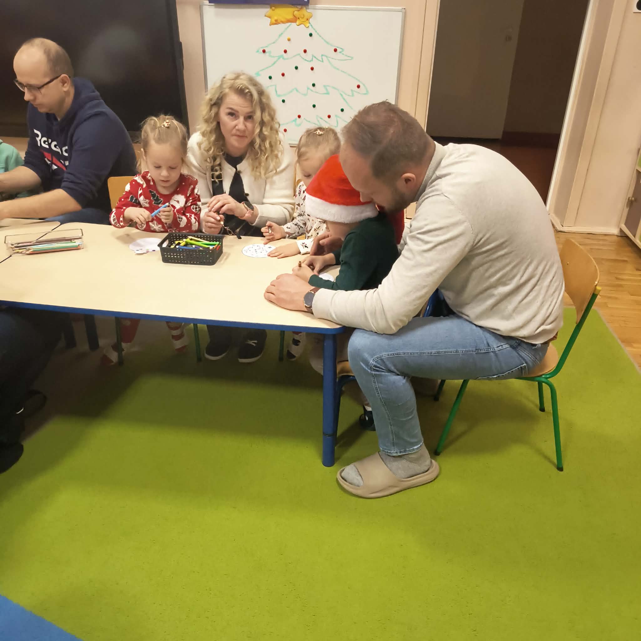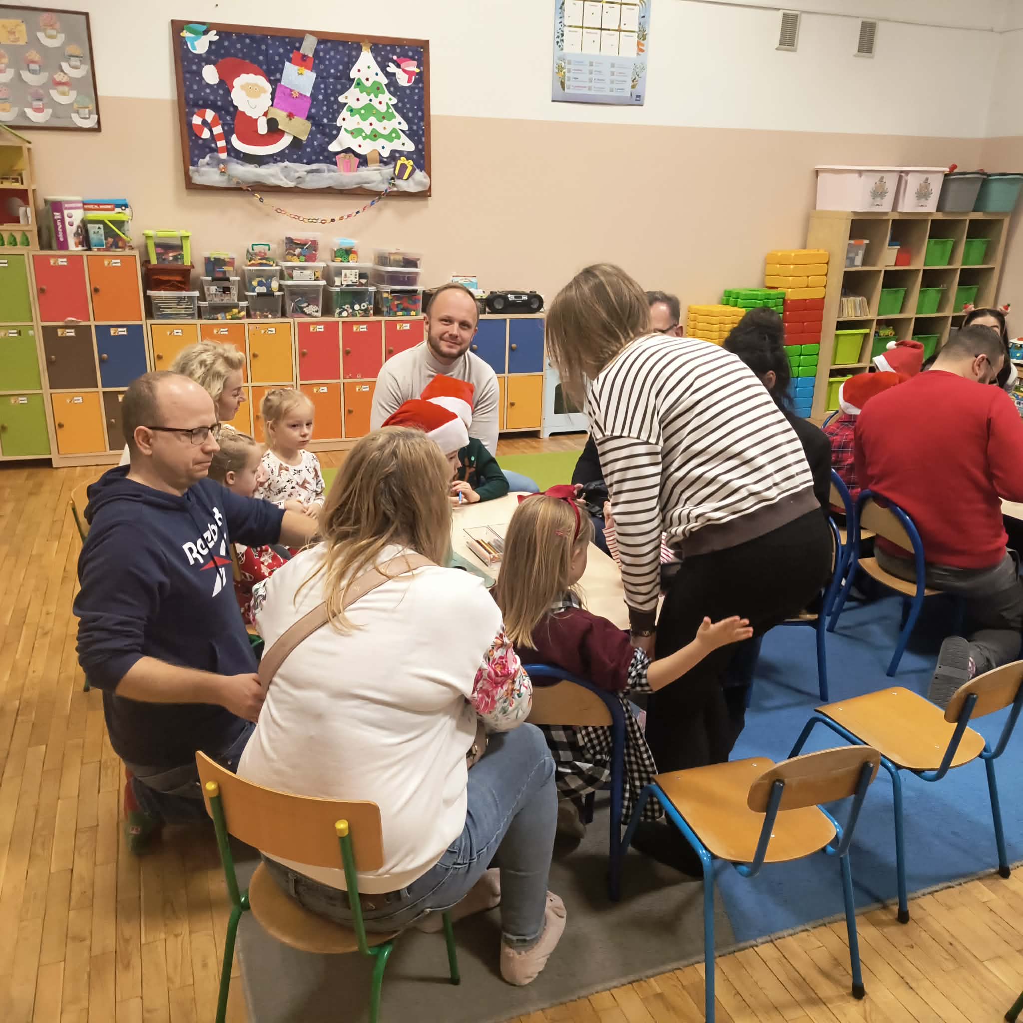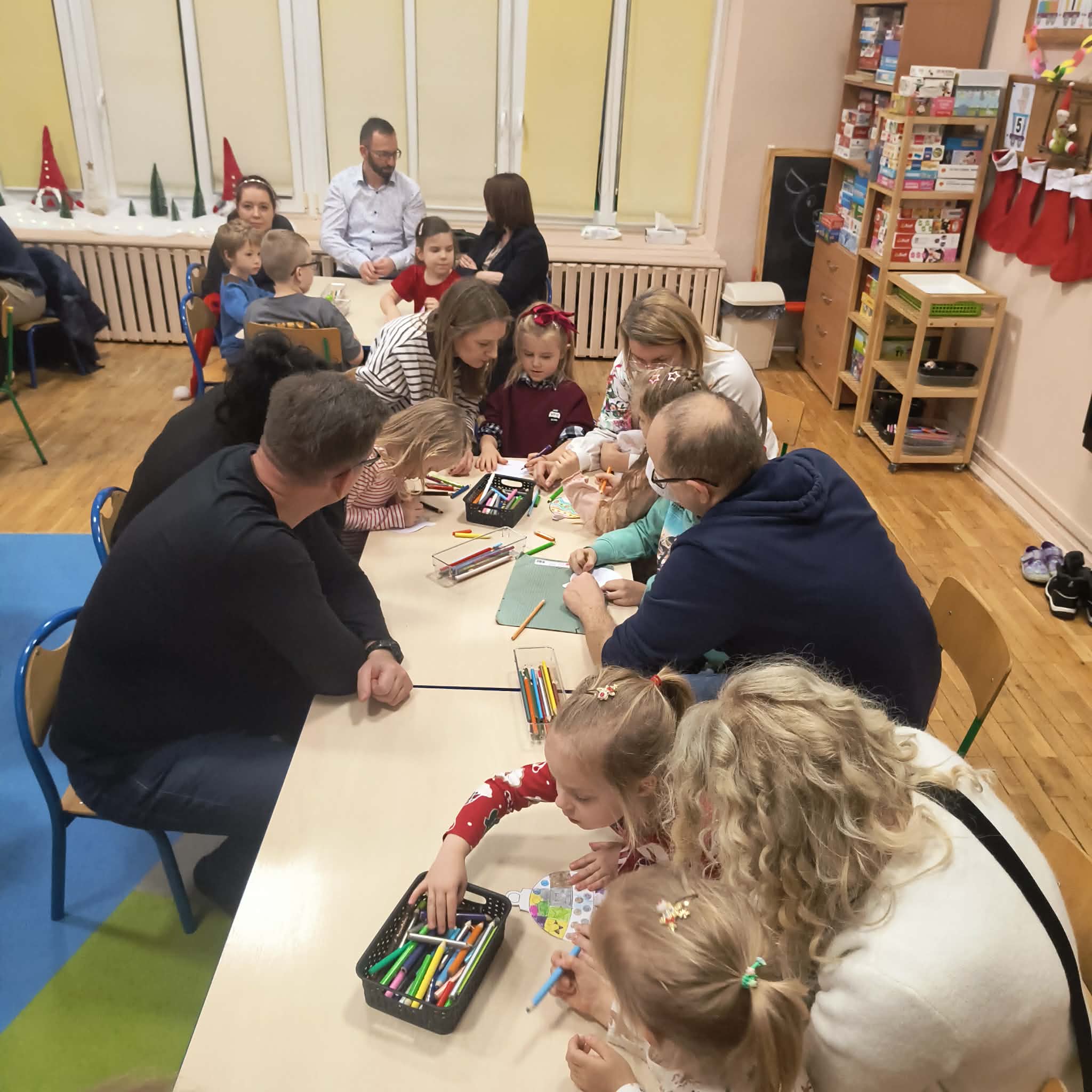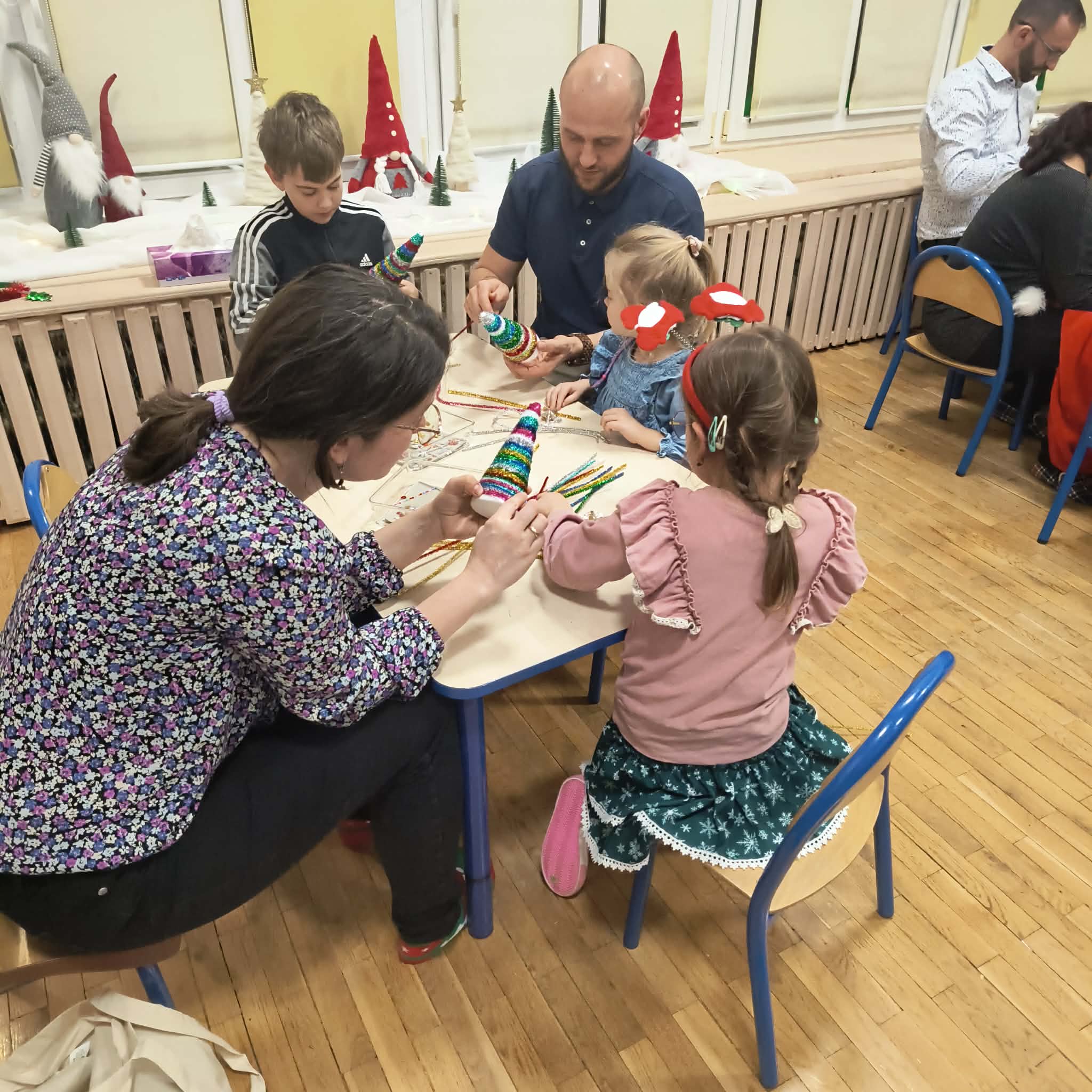 W środę 17 grudnia w grupie "Pszczółki" odbyły się Warsztaty Bożonarodzeniowe wprowadzające dzieci i rodziców w radosny nastrój oczekiwania na Boże Narodzenie. Spotkanie było okazją do świetnej zabawy, wspólnego kolędowania oraz miłego spędzenia czasu. Wspólnymi siłami powstała wyjątkowa choinka- pełna kolorów, kreatywności i świątecznej radości. Z całego serca dziękujemy Rodzicom, że tak licznie przybyliście na warsztaty oraz za zaangażowanie we wszystkie wykonywane zadania.