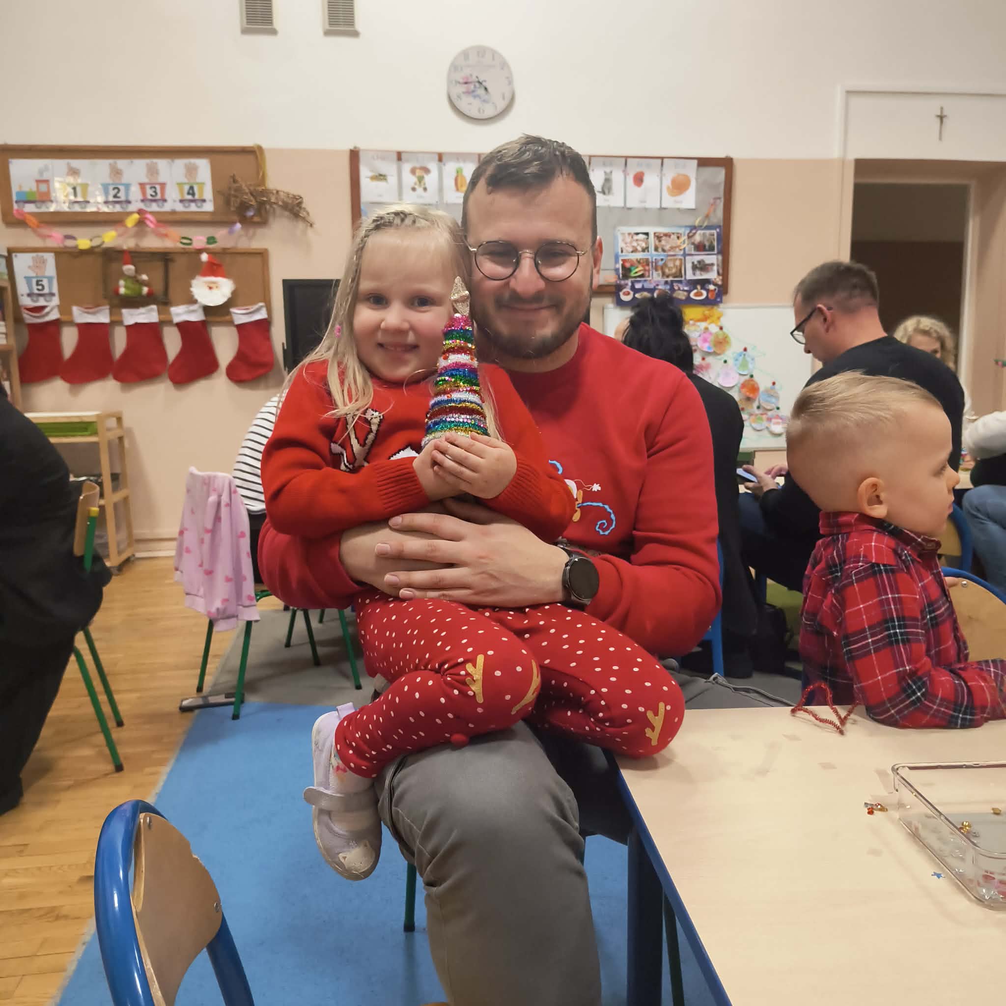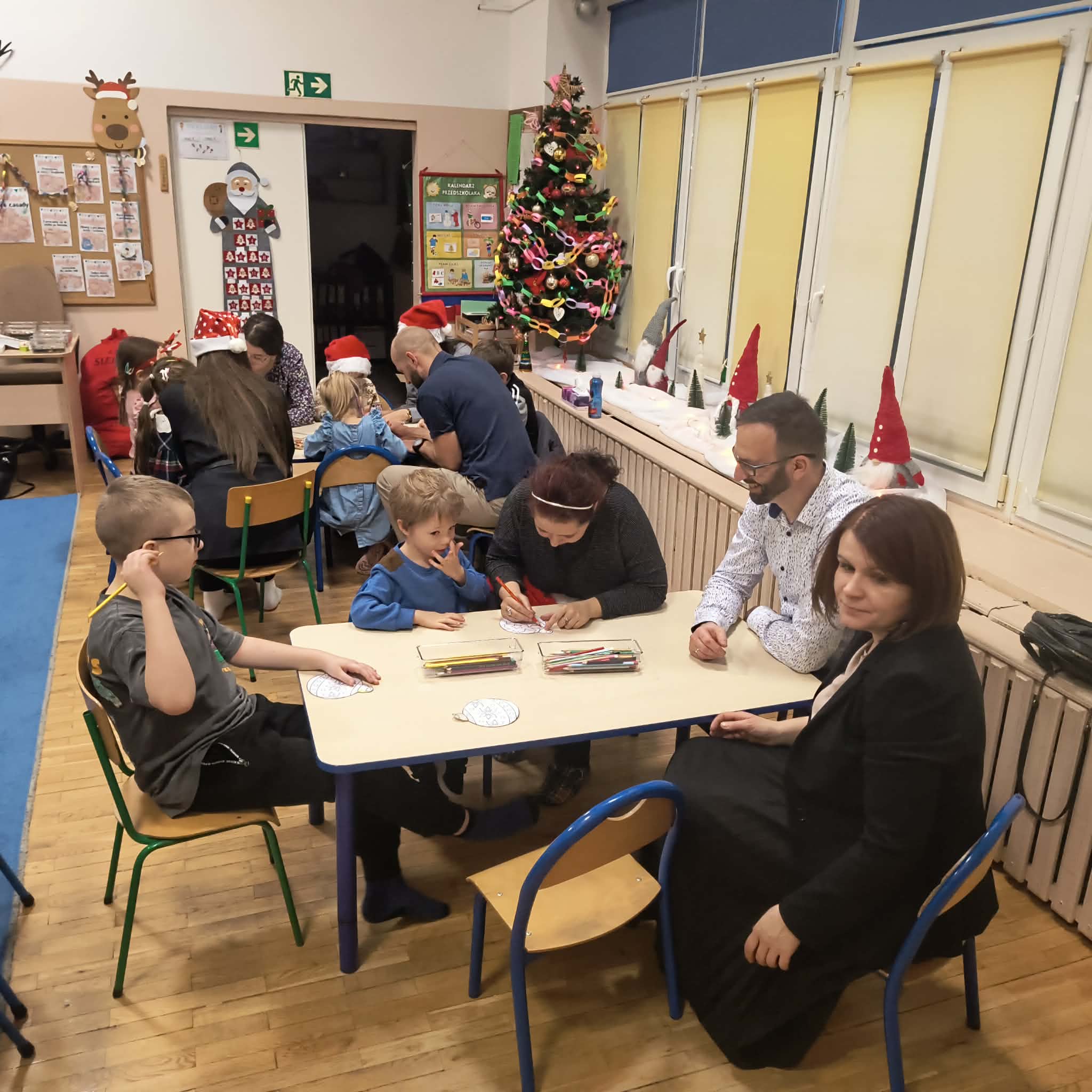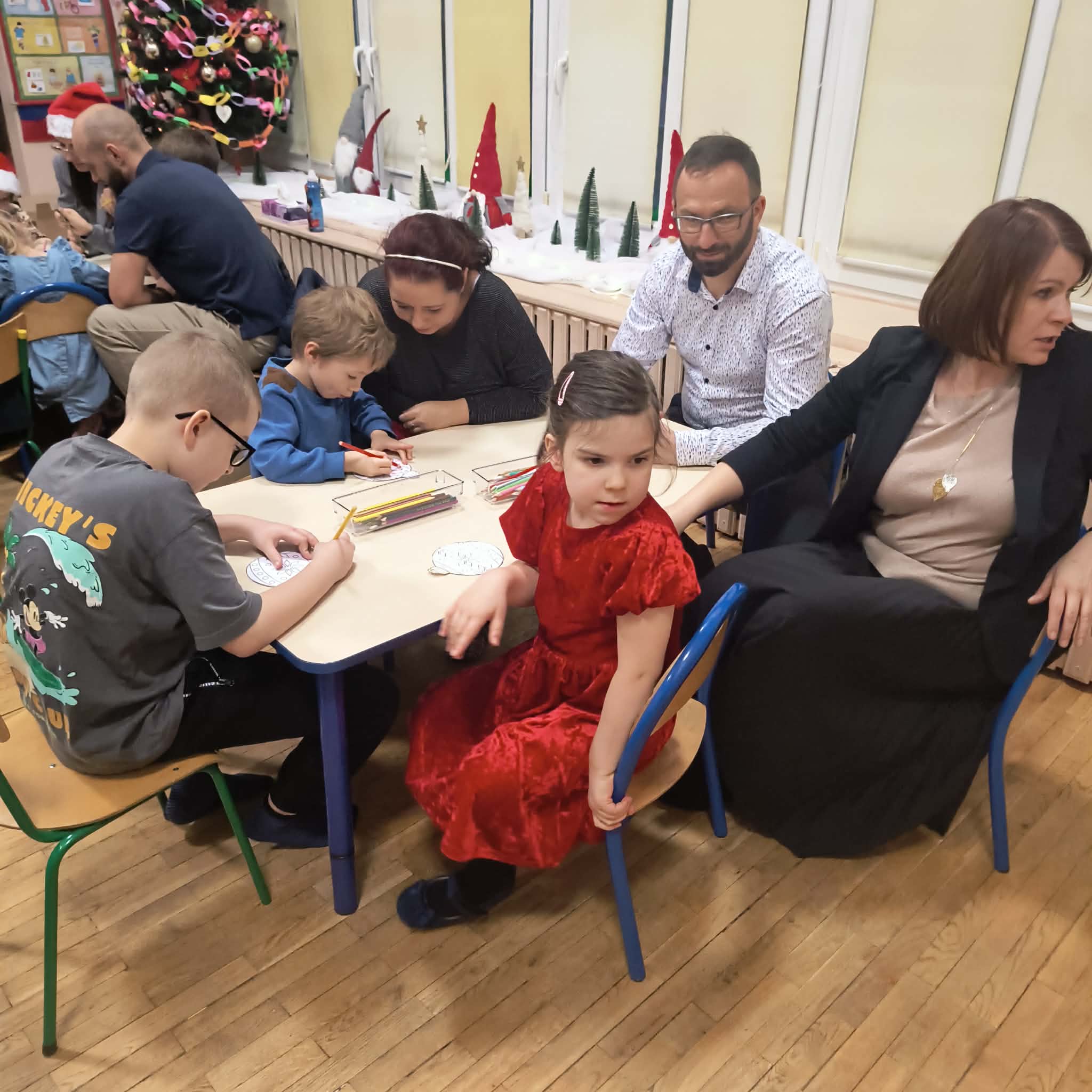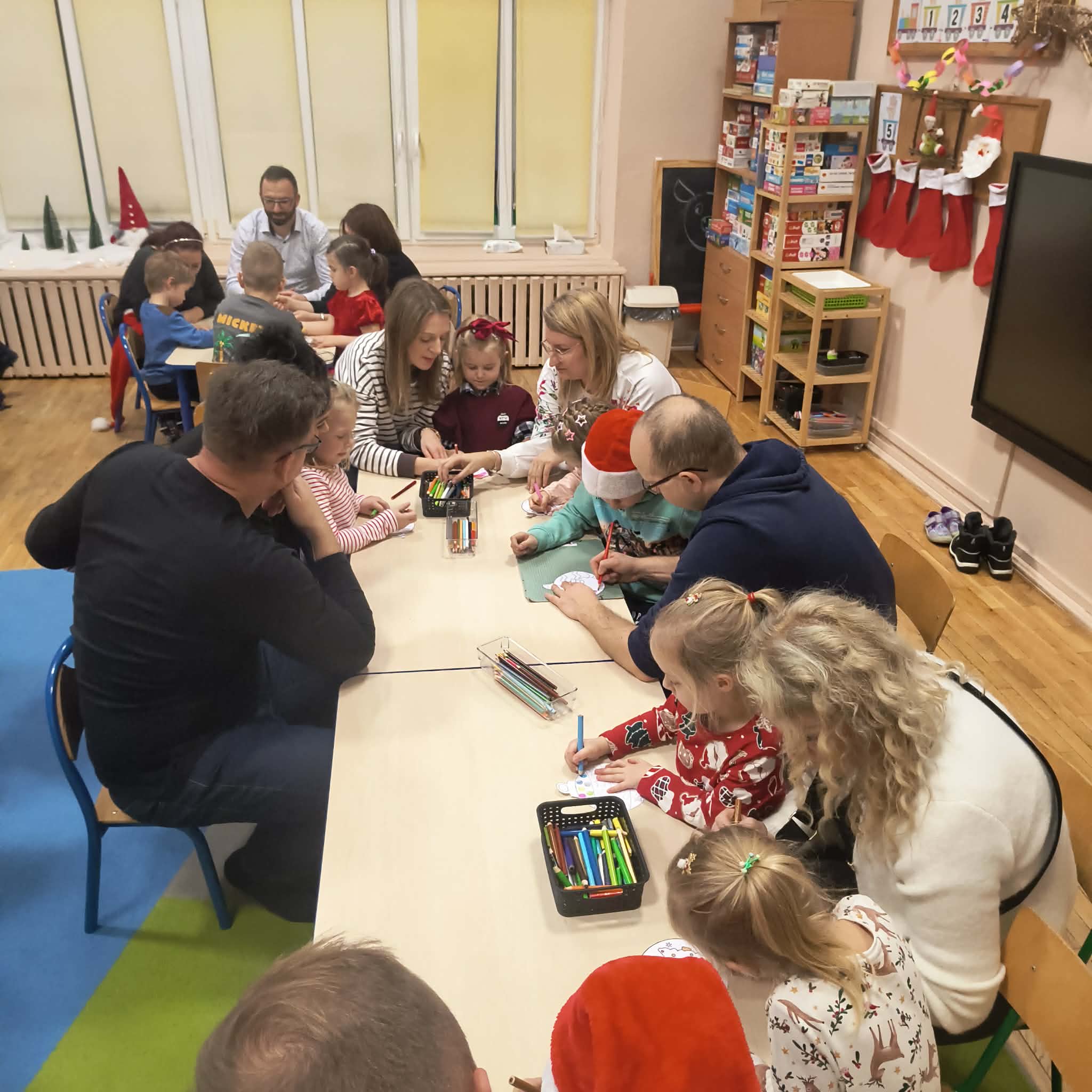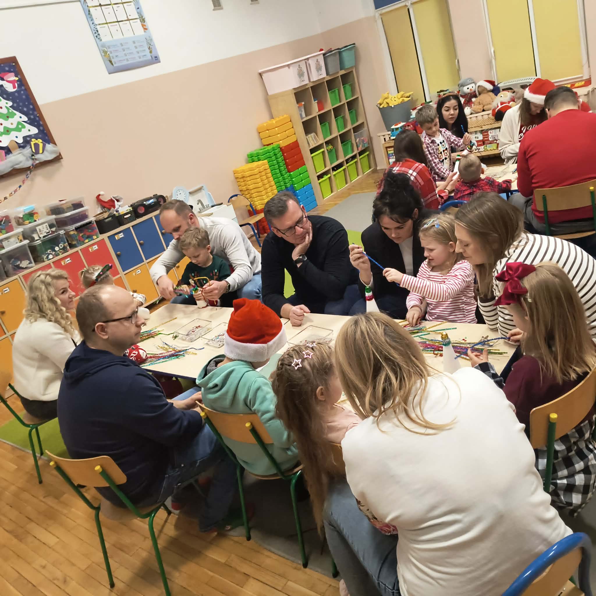 W środę 17 grudnia w grupie "Pszczółki" odbyły się Warsztaty Bożonarodzeniowe wprowadzające dzieci i rodziców w radosny nastrój oczekiwania na Boże Narodzenie. Spotkanie było okazją do świetnej zabawy, wspólnego kolędowania oraz miłego spędzenia czasu. Wspólnymi siłami powstała wyjątkowa choinka- pełna kolorów, kreatywności i świątecznej radości. Z całego serca dziękujemy Rodzicom, że tak licznie przybyliście na warsztaty oraz za zaangażowanie we wszystkie wykonywane zadania.