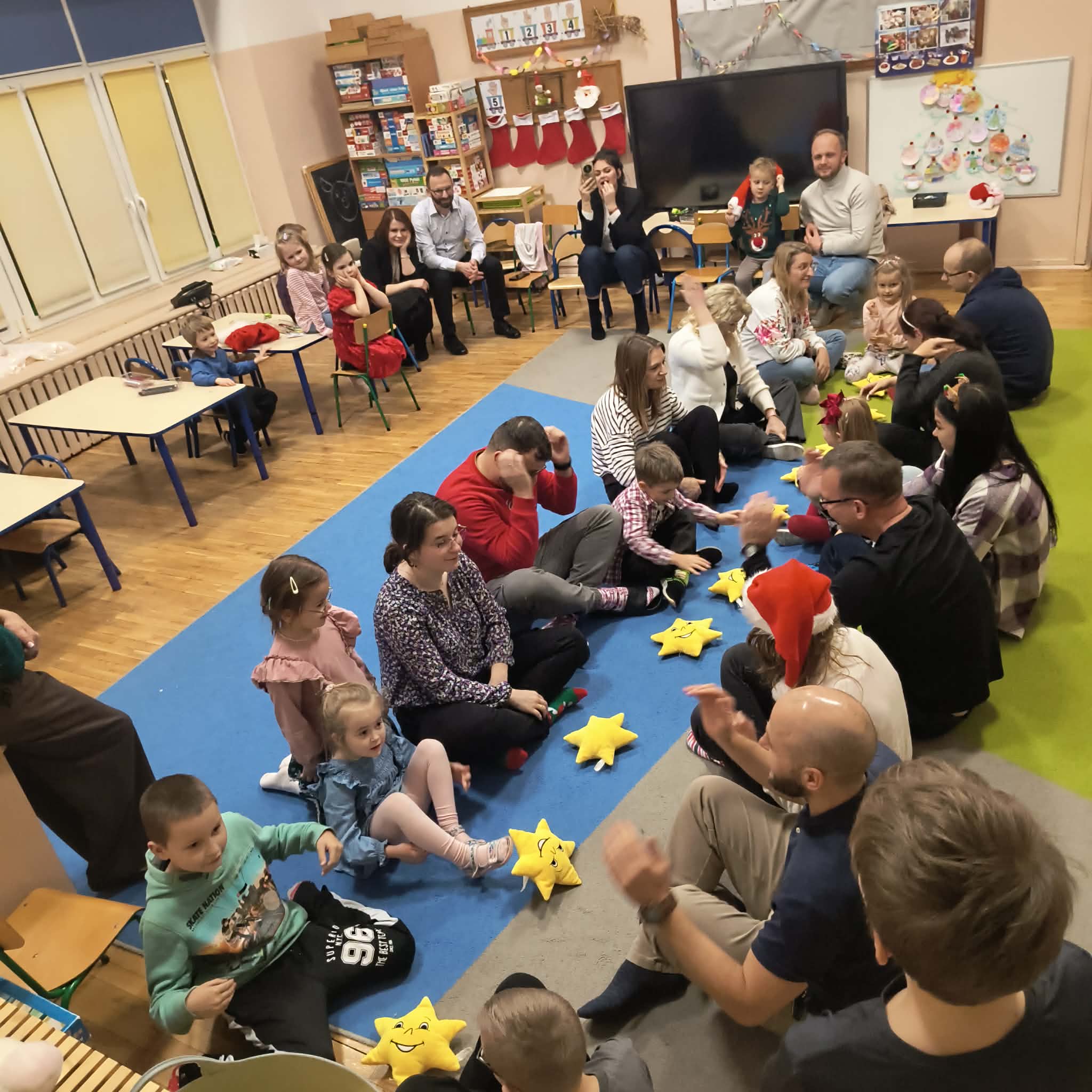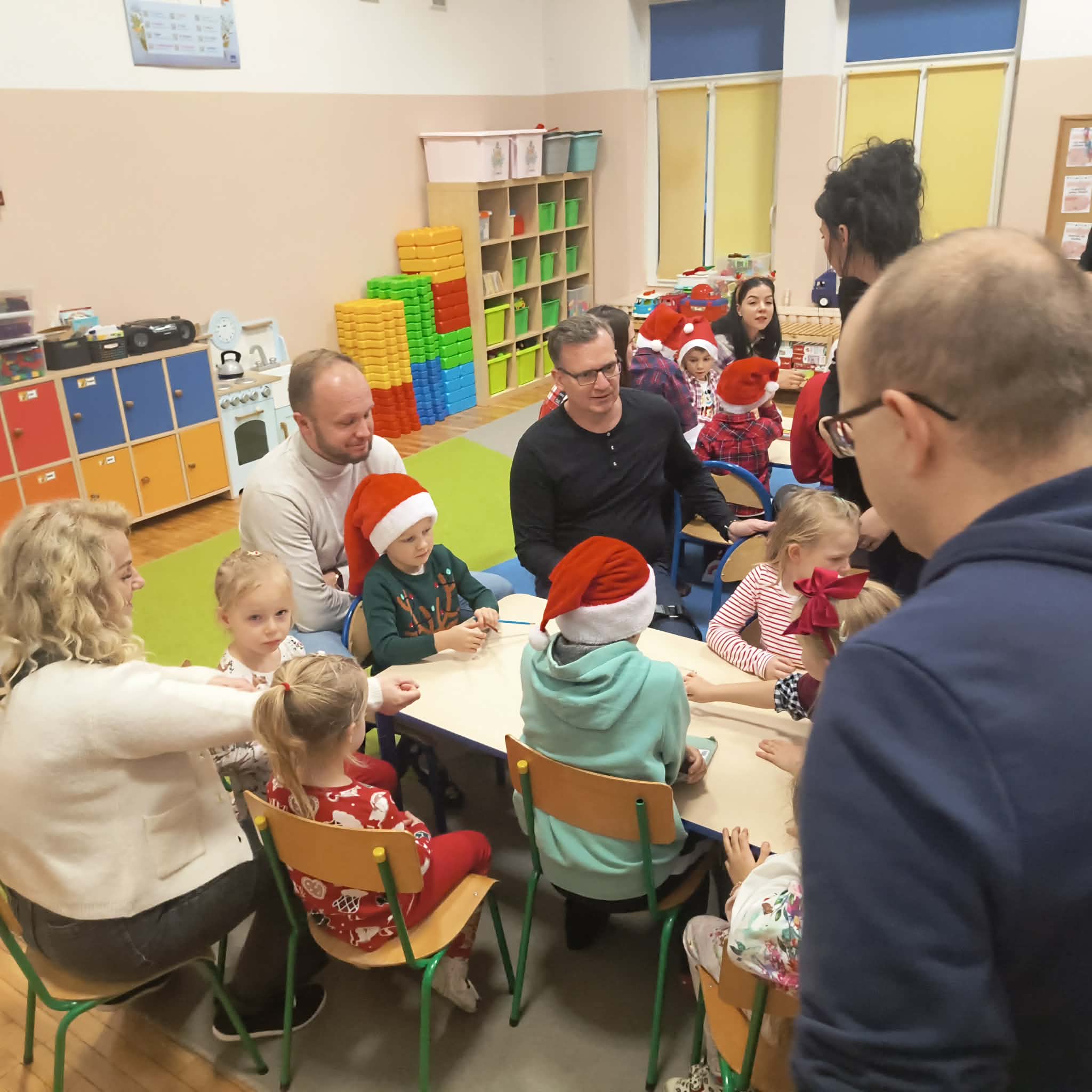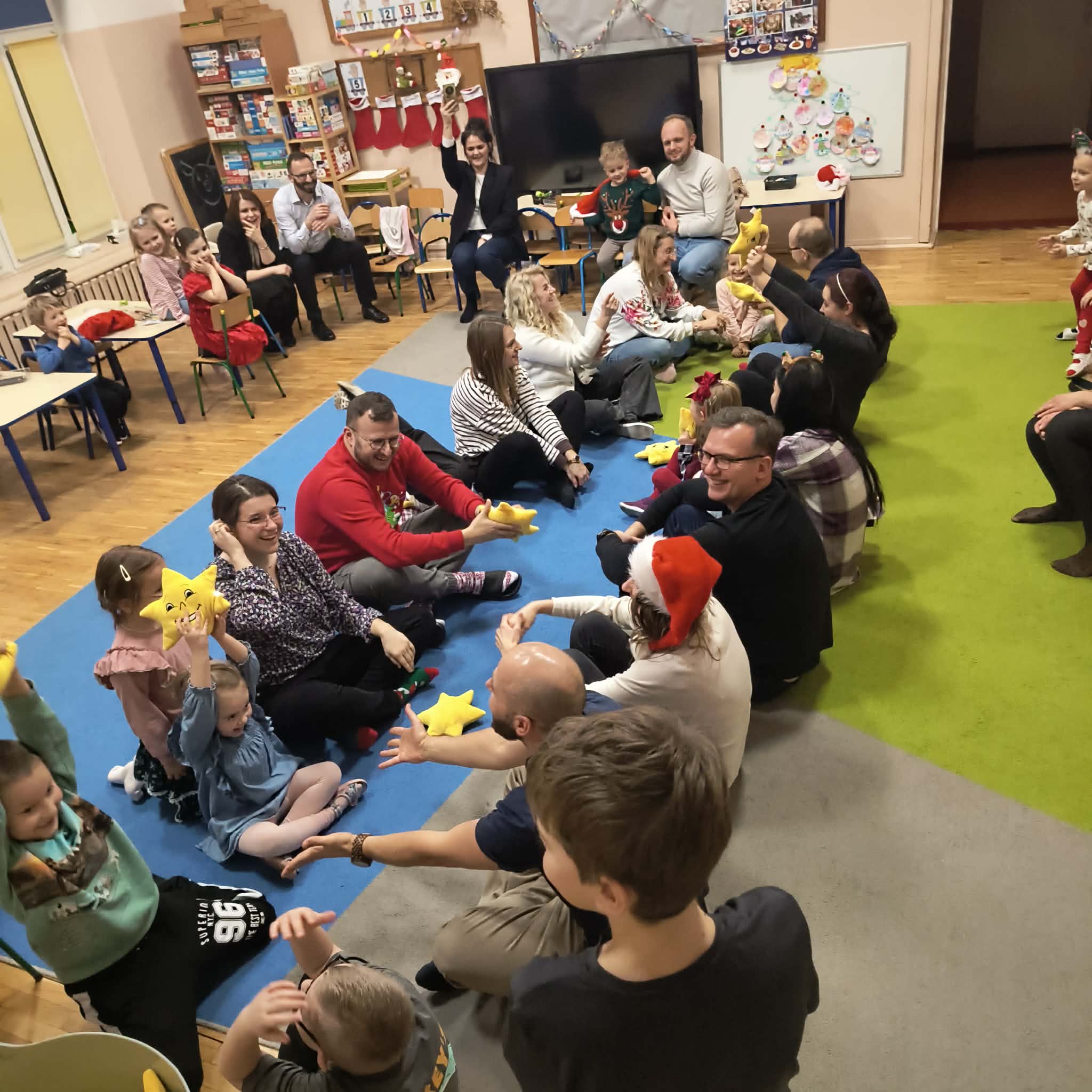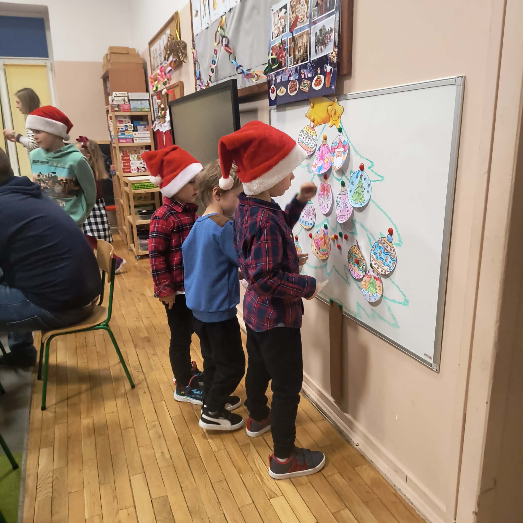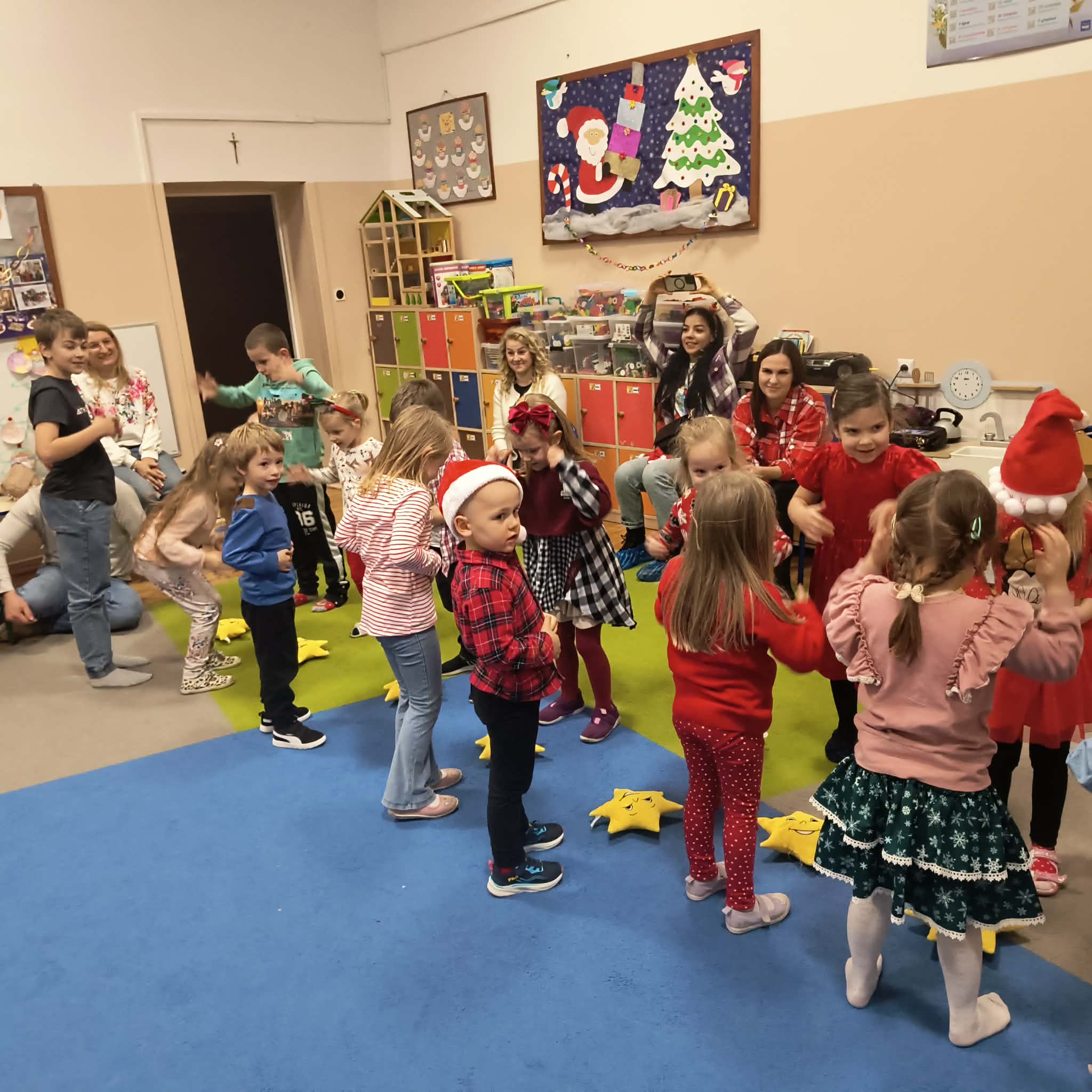W środę 17 grudnia w grupie "Pszczółki" odbyły się Warsztaty Bożonarodzeniowe wprowadzające dzieci i rodziców w radosny nastrój oczekiwania na Boże Narodzenie. Spotkanie było okazją do świetnej zabawy, wspólnego kolędowania oraz miłego spędzenia czasu. Wspólnymi siłami powstała wyjątkowa choinka- pełna kolorów, kreatywności i świątecznej radości. Z całego serca dziękujemy Rodzicom, że tak licznie przybyliście na warsztaty oraz za zaangażowanie we wszystkie wykonywane zadania.
