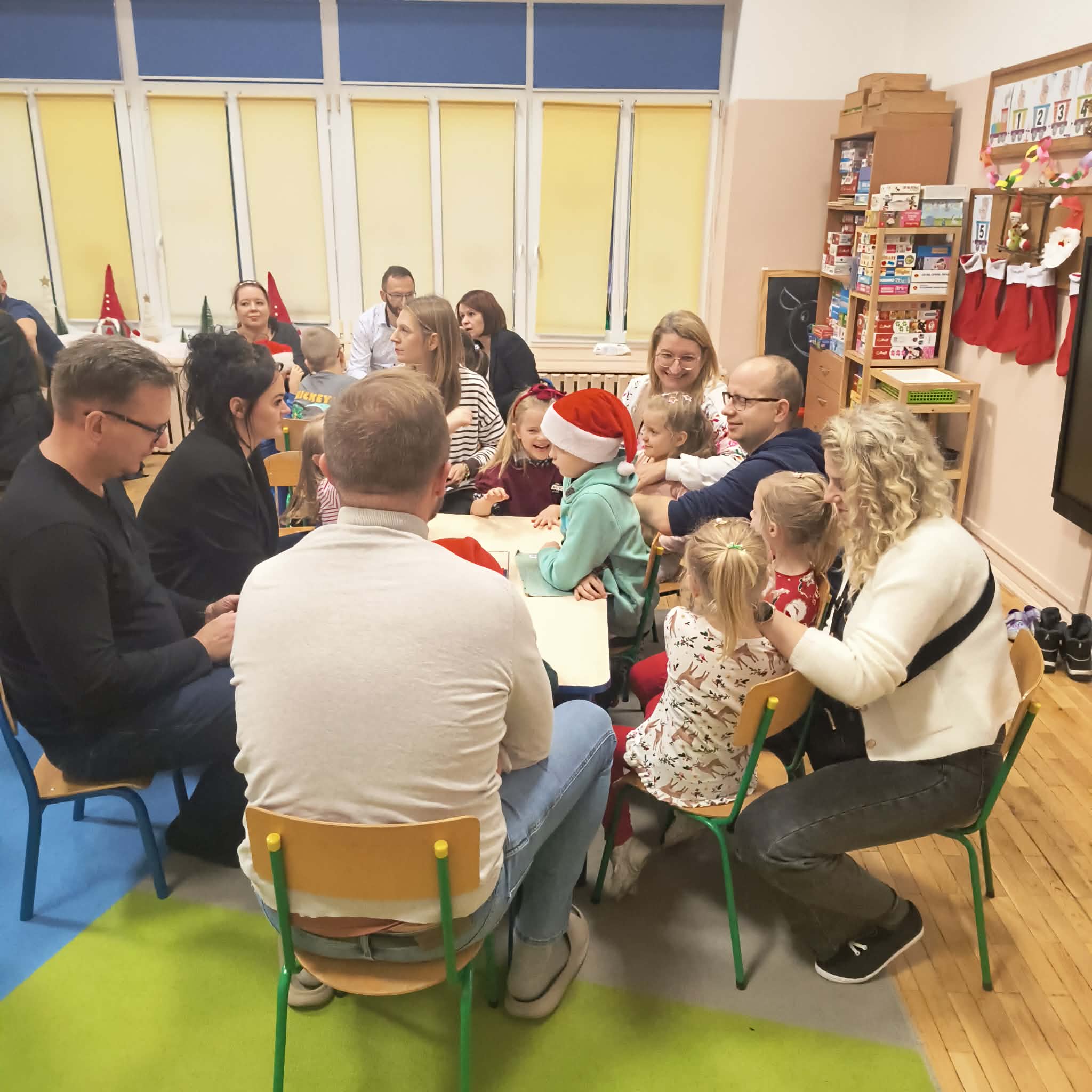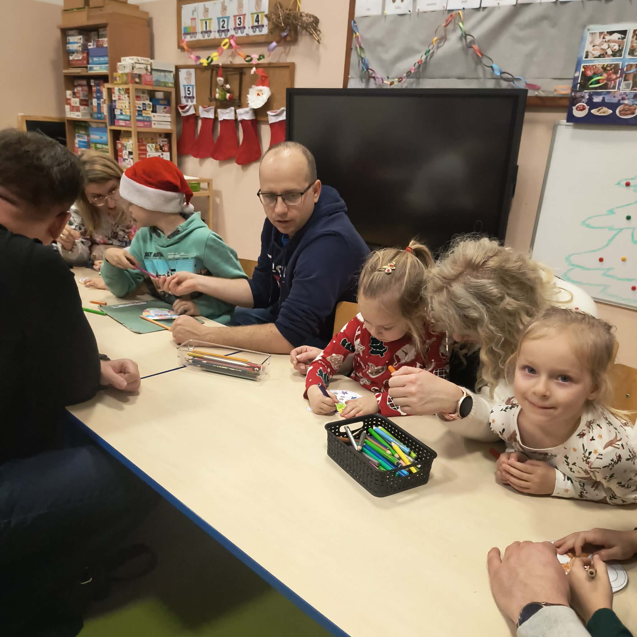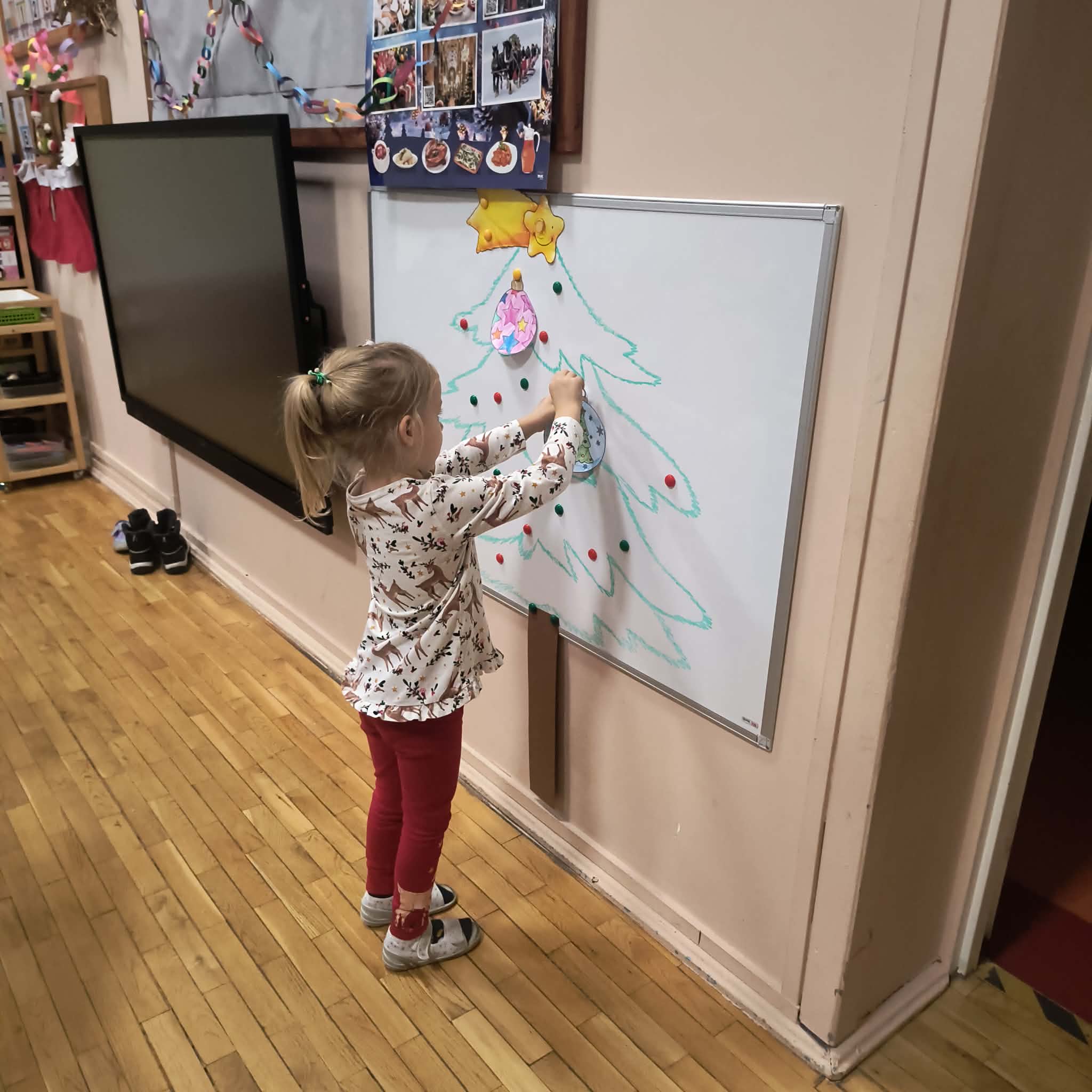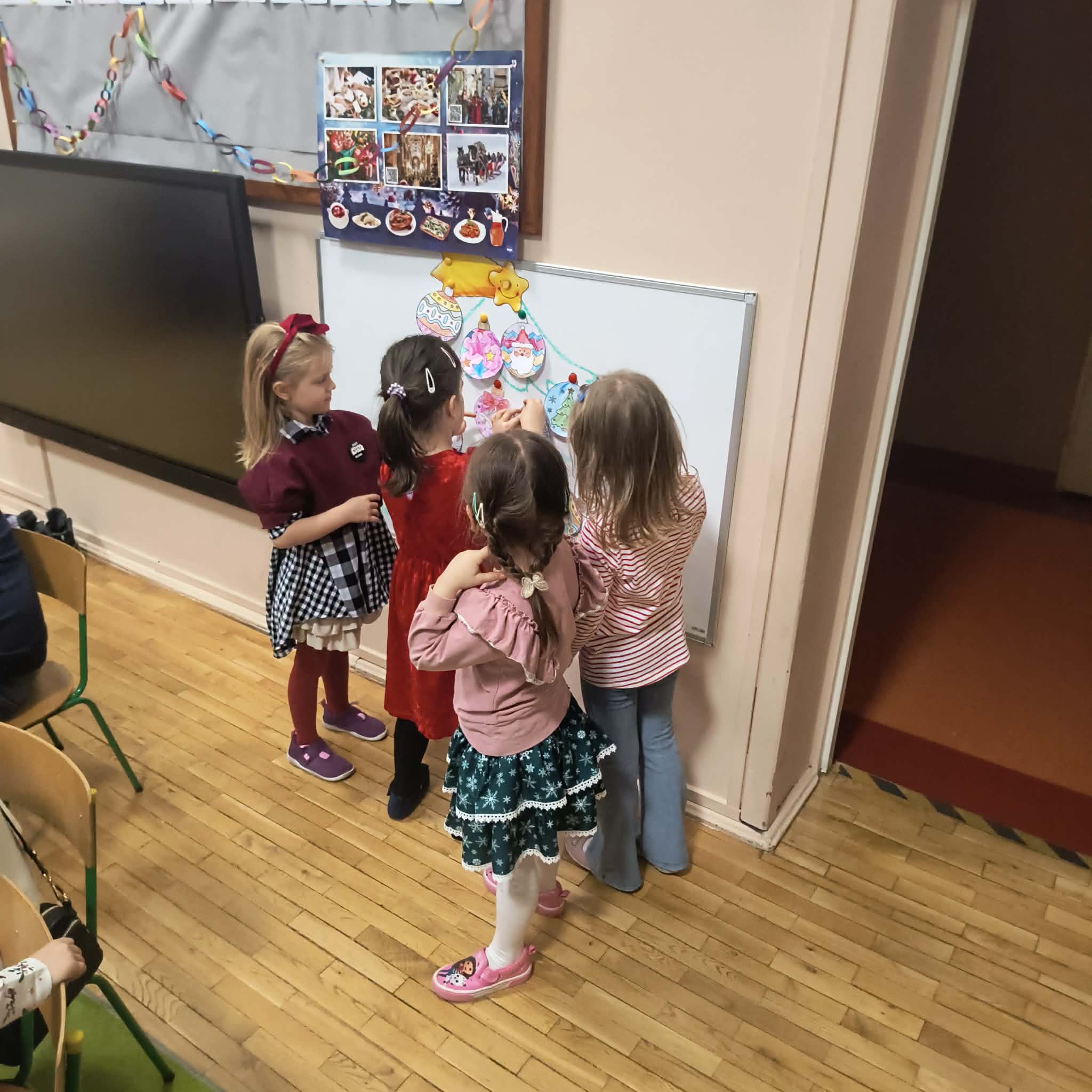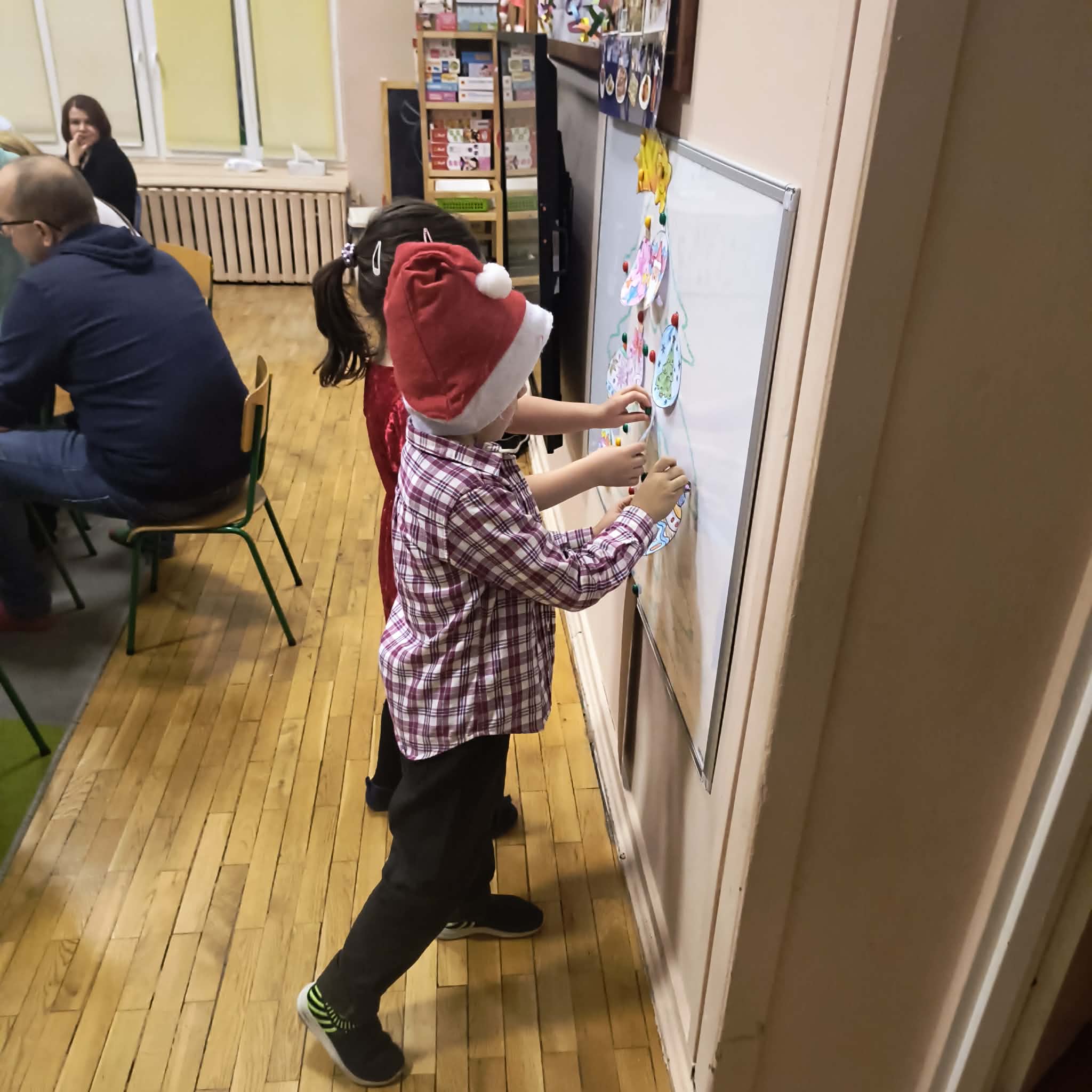 W środę 17 grudnia w grupie "Pszczółki" odbyły się Warsztaty Bożonarodzeniowe wprowadzające dzieci i rodziców w radosny nastrój oczekiwania na Boże Narodzenie. Spotkanie było okazją do świetnej zabawy, wspólnego kolędowania oraz miłego spędzenia czasu. Wspólnymi siłami powstała wyjątkowa choinka- pełna kolorów, kreatywności i świątecznej radości. Z całego serca dziękujemy Rodzicom, że tak licznie przybyliście na warsztaty oraz za zaangażowanie we wszystkie wykonywane zadania.