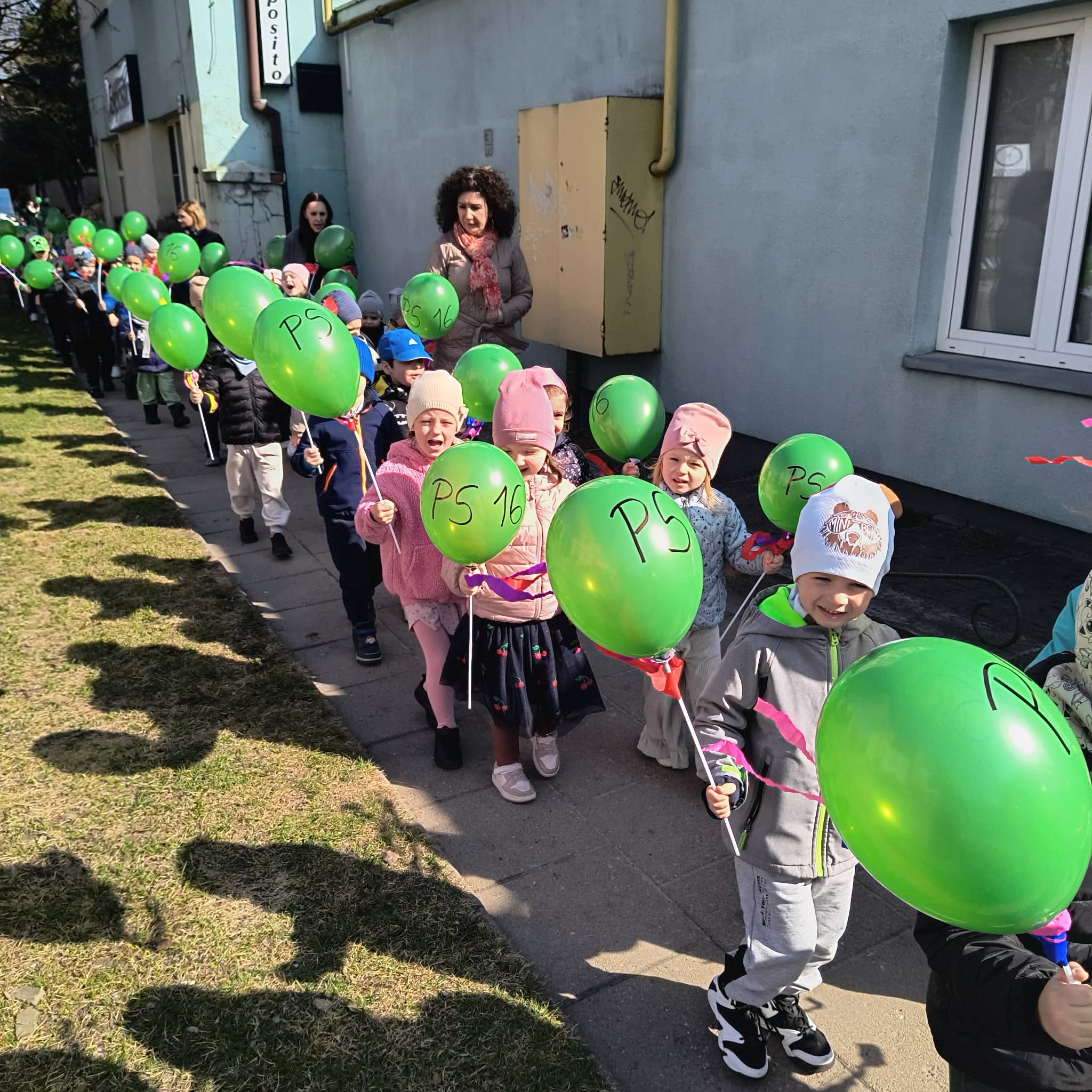 Jeśli ktoś widział, bądź słyszał o maszerujących i śpiewających dzieciach z zielonymi balonikami - to my, przedszkolaki z Przedszkola Samorządowego nr 16. Co roku o tej porze w ten radosny sposób witamy Panią Wiosnę. My idąc ulicami naszego miasta spotkaliśmy ją kilka razy. Kto nie wierzy? Ten gapa😁😁😁